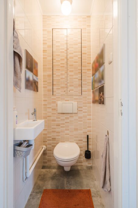 Dit keurig onderhouden appartement op de eerste verdieping biedt een lichte en ruime woonkamer, drie slaapkamers, een landelijke keuken met gasfornuis, combi oven/magnetron, vaatwasser, koelkast en vriezer en een volledig betegelde, moderne badkamer met regendouche en wastafel. De achterzijde van het appartement kijkt uit op een groen veldje en een grote boom, prachtig groen in de zomer, waardoor het heerlijk vertoeven is op het balkon met middagzon. De laminaatvloeren en subtiele houten afwerkingen door het appartement geven een warme en verzorgde uitstraling.