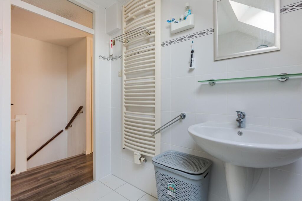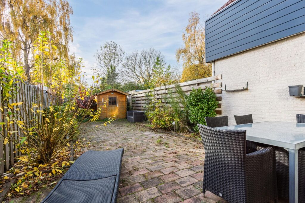 - De maar liefst 13 meter diepe achtertuin biedt optimale bezonning en beschikt onder andere over een houten berging en een nieuwe schutting (2023) met deur naar het achterliggende voetpad.