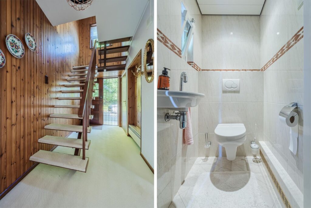 Entree met toegang tot het toilet en de trapopgang naar de verdieping.
