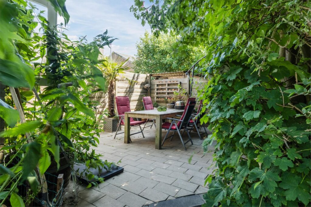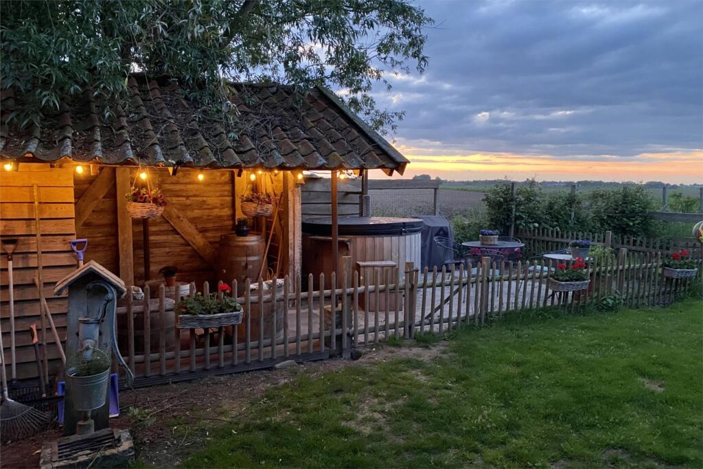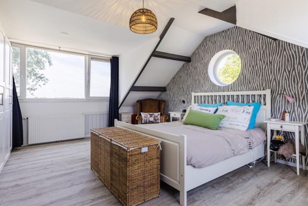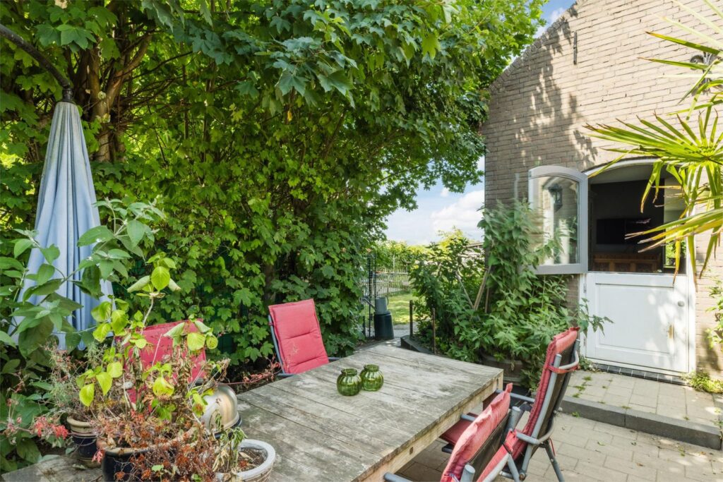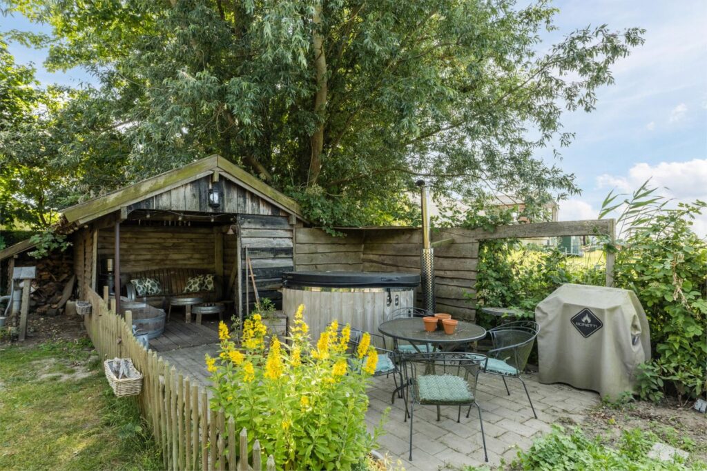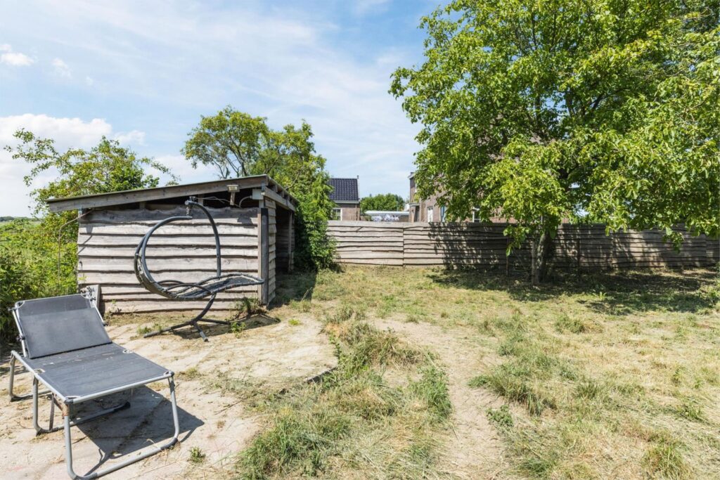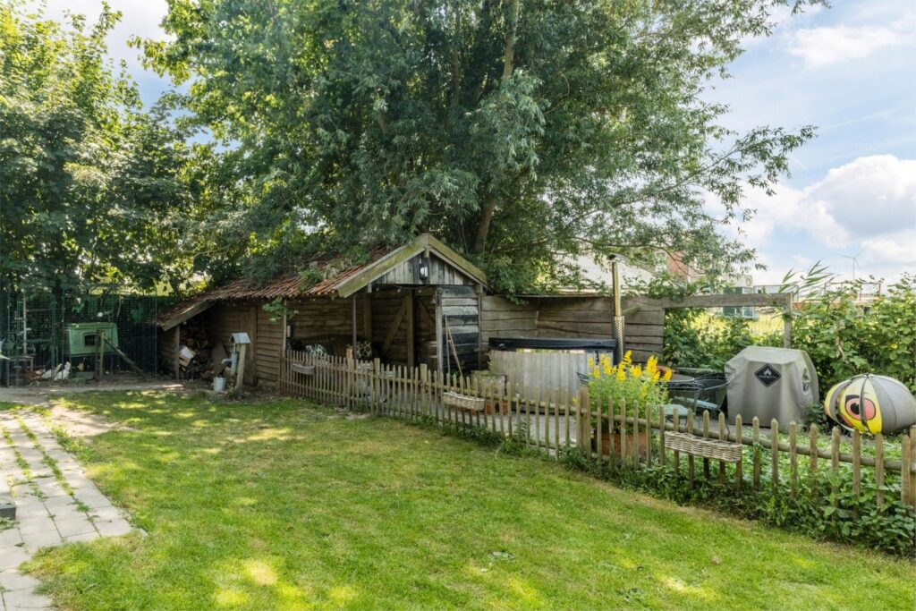 De woning heeft een grote en lichte woonkamer waar de vele ramen met charmante boogvormen zorgen voor een uitnodigende sfeer en vrij uitzicht op de polder en de royale zonnige tuin. De tuin heeft diverse terrassen en een vrijstaande schuur met sfeervolle overkapping en ligt op een perceel van maar liefst 893 m² aan een rustige dijk net buiten het dorp. Een heerlijke plek voor wie graag privacy heeft en buiten leeft, thuis wil werken of de ruimte zoekt voor hobby’s of dieren of gewoon ontspannen.
