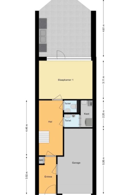 ENTREE, HAL, GARAGE, WASRUIMTE, TOILET, SLAAPKAMER.
