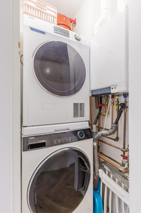een berging met CV-ketel en aansluitingen voor was- en droogmachines,