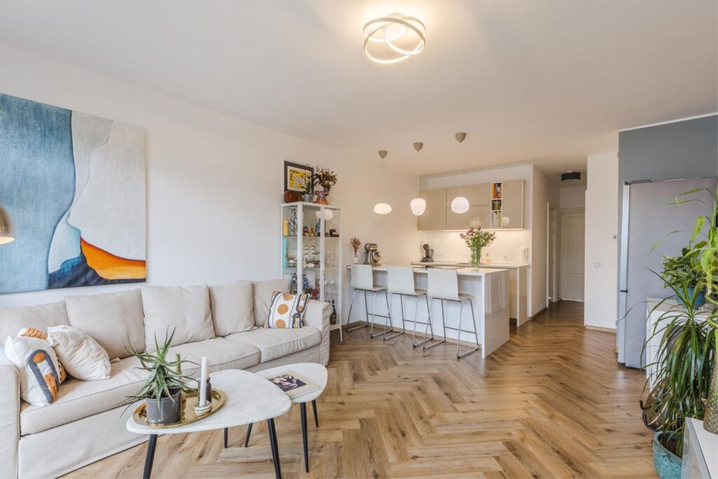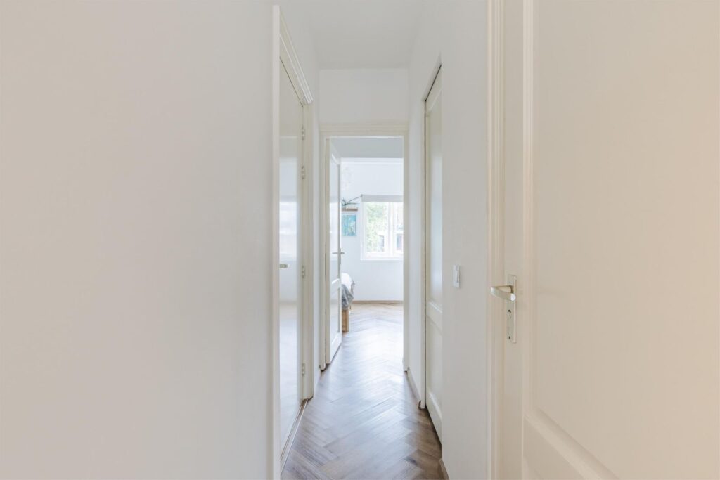 Via het gezamenlijke trappenhuis van de vriendelijke VvE kom je binnen in een licht, praktisch en goed ingedeeld appartement van 43 m². Vanuit de kleine hal stap je de warme en uitnodigende woonkamer in, met grote ramen die veel natuurlijk licht binnenlaten.