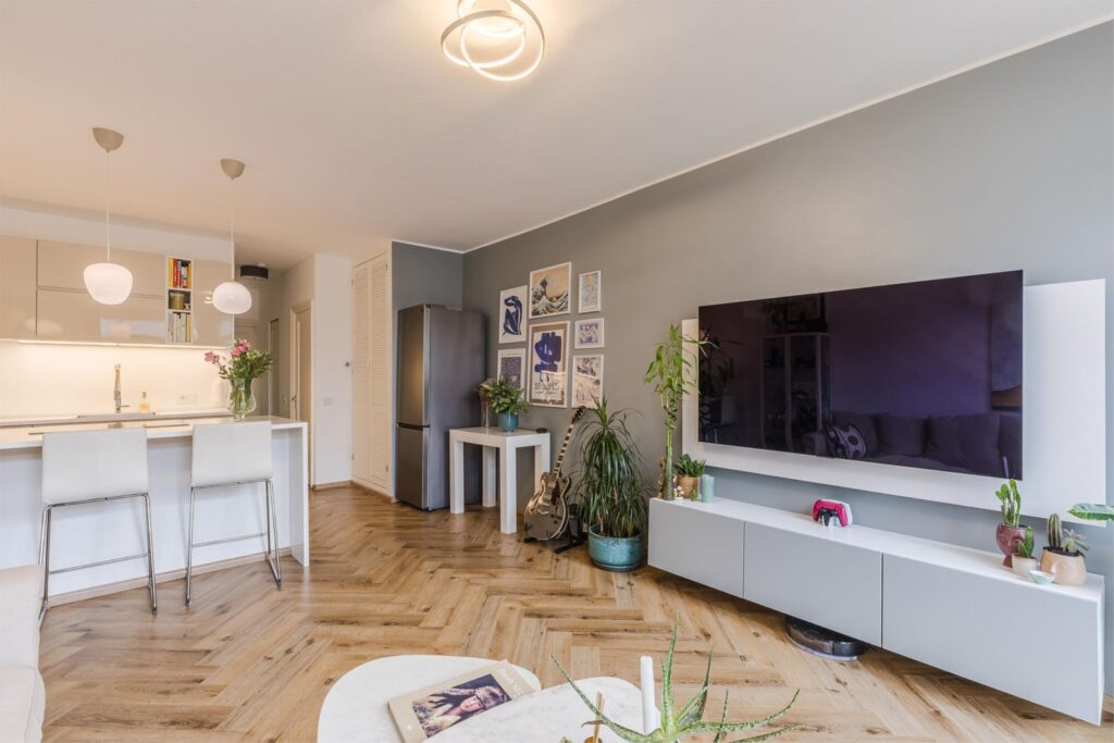 Across the apartment, ceilings and walls were plastered and the flooring gives an extra touch of warmth.