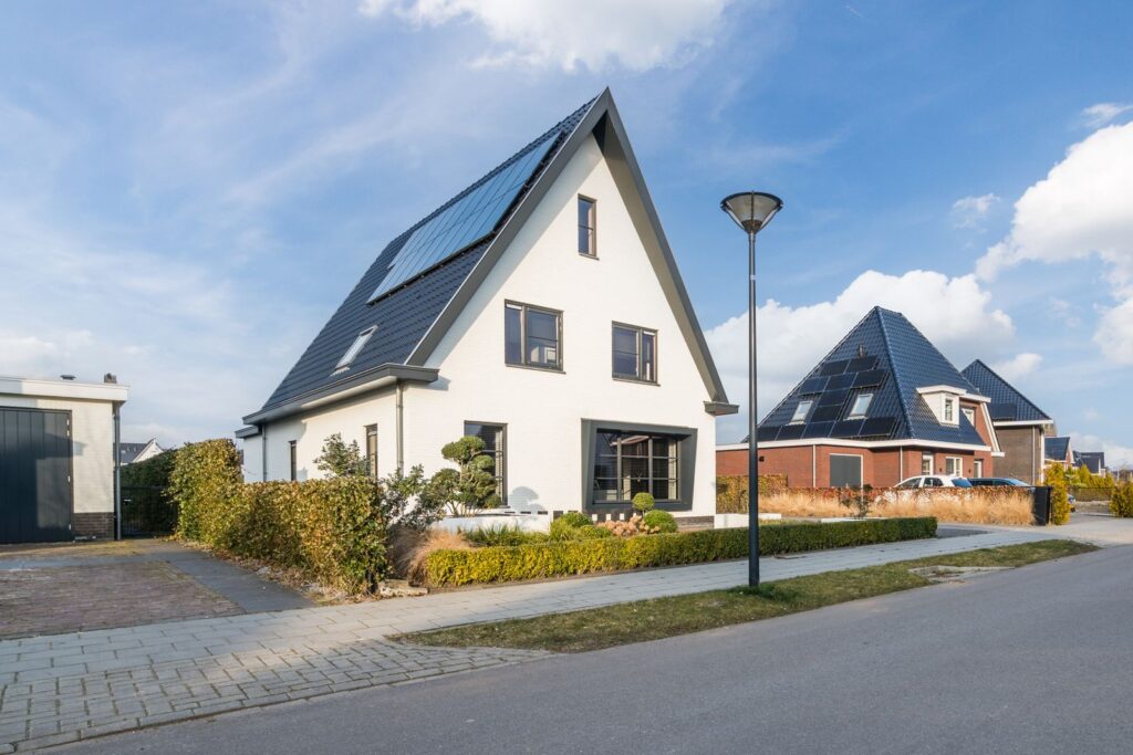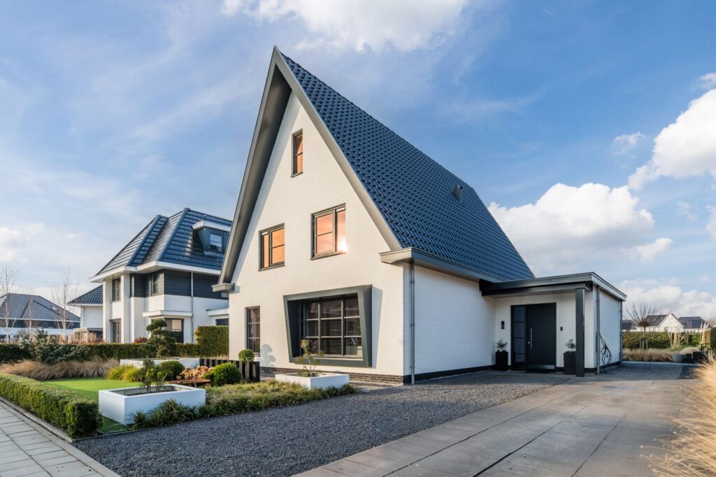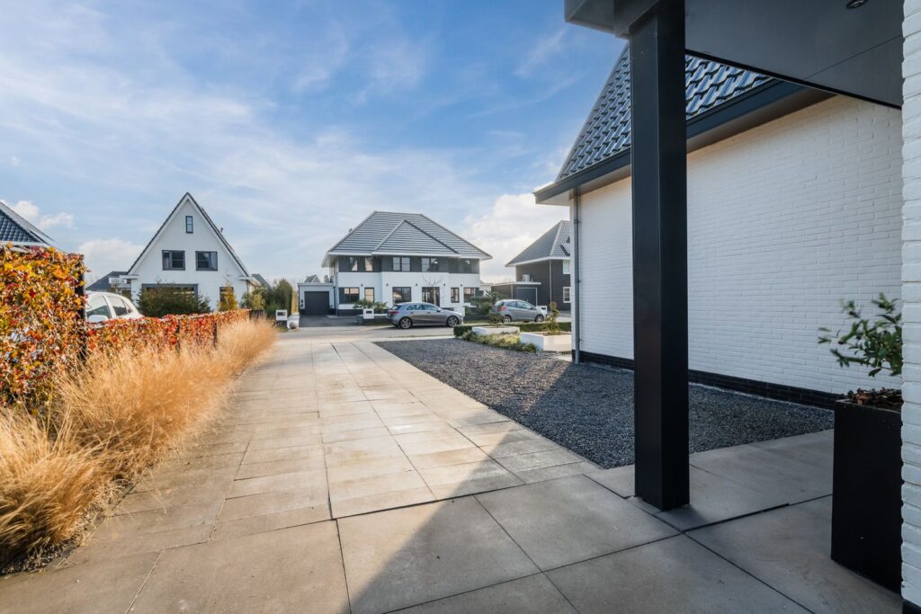 De oprit biedt plaats aan meerdere auto’s, en er is genoeg ruimte naast de woning om nog een carport te realiseren.