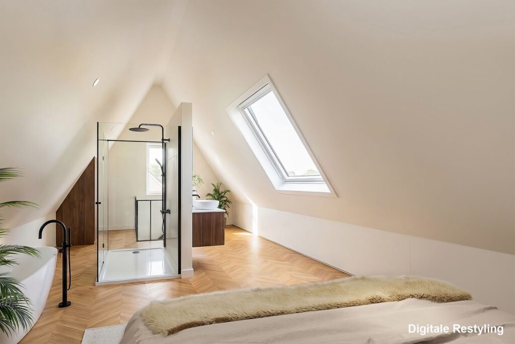 Verder is er nog een apart toilet en een riante luxe badkamer (14m2) Deze is voorzien van vloerverwarming, een vrijstaand ligbad, dubbel wastafelmeubel en een heerlijke ruime inloopdouche met regendouchekop en handdouche. Het grote dakraam zorgt voor veel natuurlijk licht, maar ook privacy. Je eigen mini-spa!