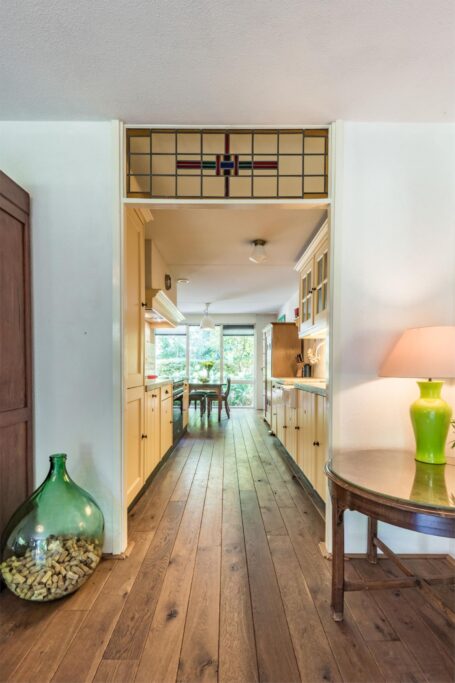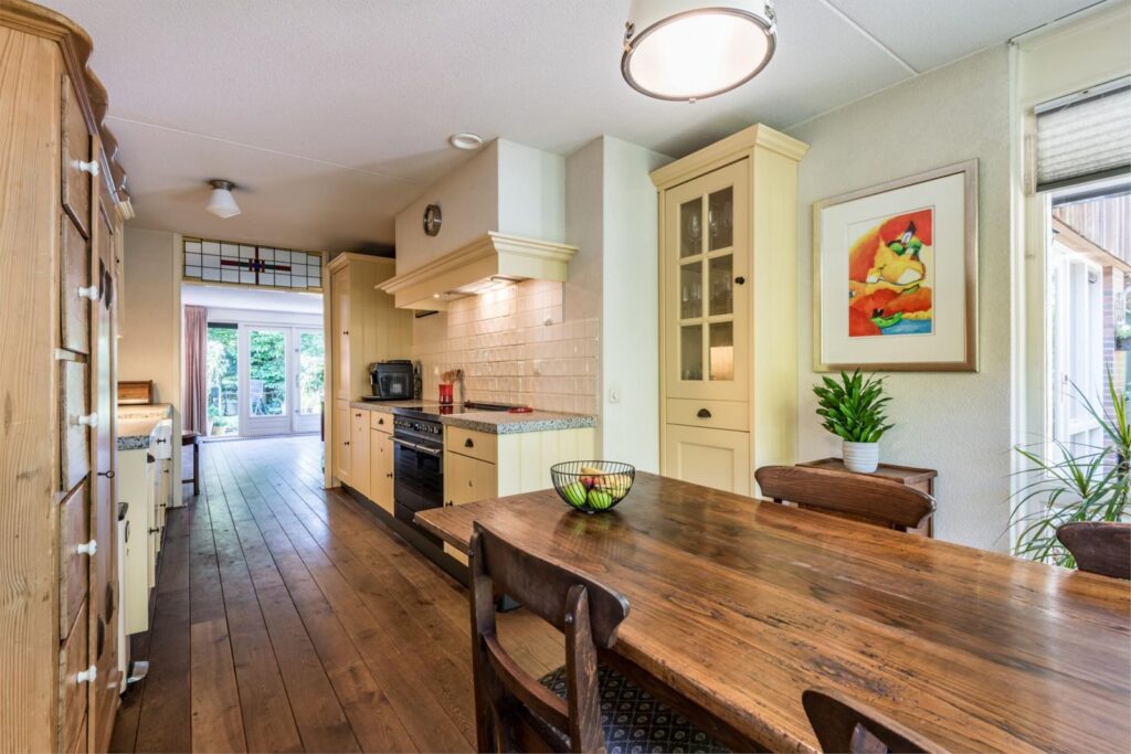 Grenzend aan de woonkamer bevindt zich de ruime woonkeuken (ca. 18 m²) aan de voorzijde. Met uitzicht op de groene voortuin is dit een heerlijke plek om te koken, borrelen of uitgebreid te tafelen met familie en vrienden. De keuken is een echte blikvanger: een landelijke Tinello-keuken met een unieke indeling. In 2024 is deze uitgebreid met een inductiekookplaat en dubbele oven van Smeg. Koel-vries combinatie 2023. Het geheel is afgewerkt met terrazzo werkbladen, veel kastruimte, vaatwasser en een verzonken porseleinen spoelbak – een stijlvolle combinatie van sfeer en functionaliteit.