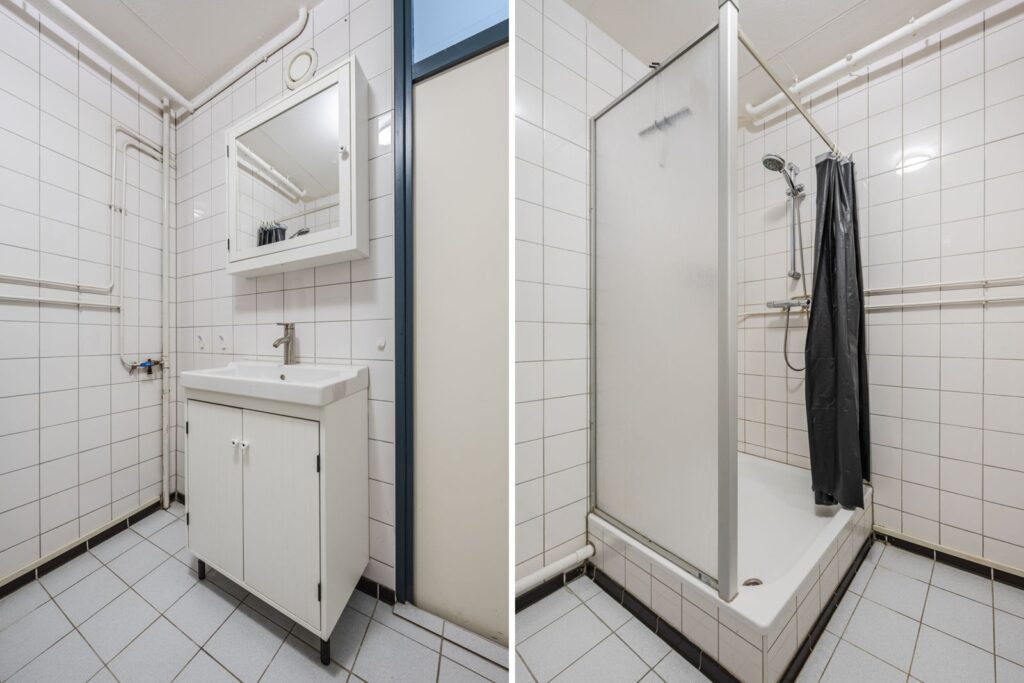 ?De badkamer is uitgerust met een douche, wastafel en wasmachineaansluiting. Het toilet is separaat en voorzien van een staand closet met fonteintje.