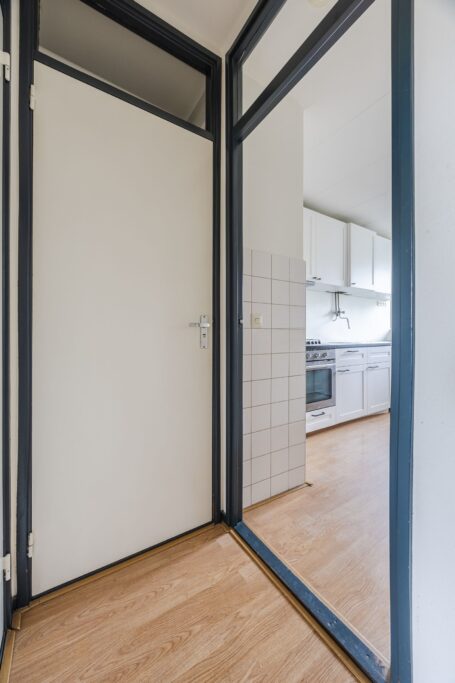?Op de 4e verdieping bevindt zich, direct bij de lift en het trappenhuis, de voordeur van het appartement.