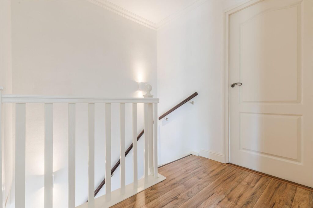 De ruime trap bekleed met stevige vloerbedekking brengt je naar de overloop die toegang biedt tot een zeer ruime slaapkamer met uitzicht op de achtertuin en twee ruime slaapkamers, waarvan 1 uitkijkt op de landerijen en uiterwaarden. De mooi afgewerkte badkamer met regen- en handdouche, zwevend toilet, wastafel met meubel en grote spiegel voorzien van verlichting, mechanische ventilatie en een designradiator.