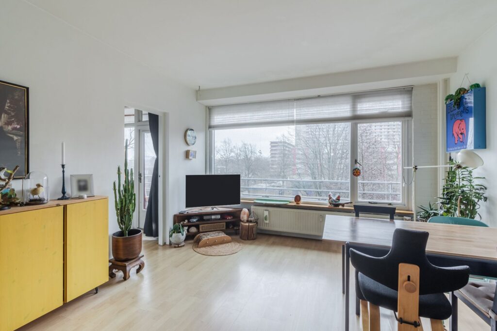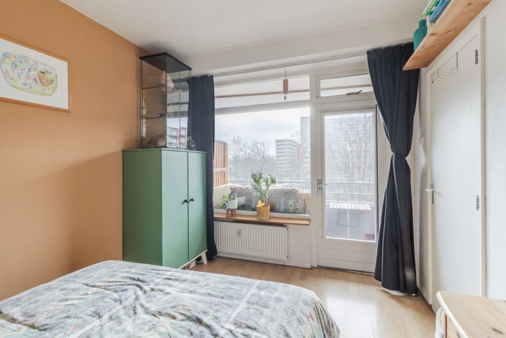 De woning beschikt over een ruime voorslaapkamer en een heerlijk lichte, sfeervolle en comfortabele woon-/eetkamer met een fraai, vrij uitzicht over groen. Aan de achterzijde bevindt zich een tweede ruime slaapkamer met toegang tot het zonnige balkon op het zuiden.