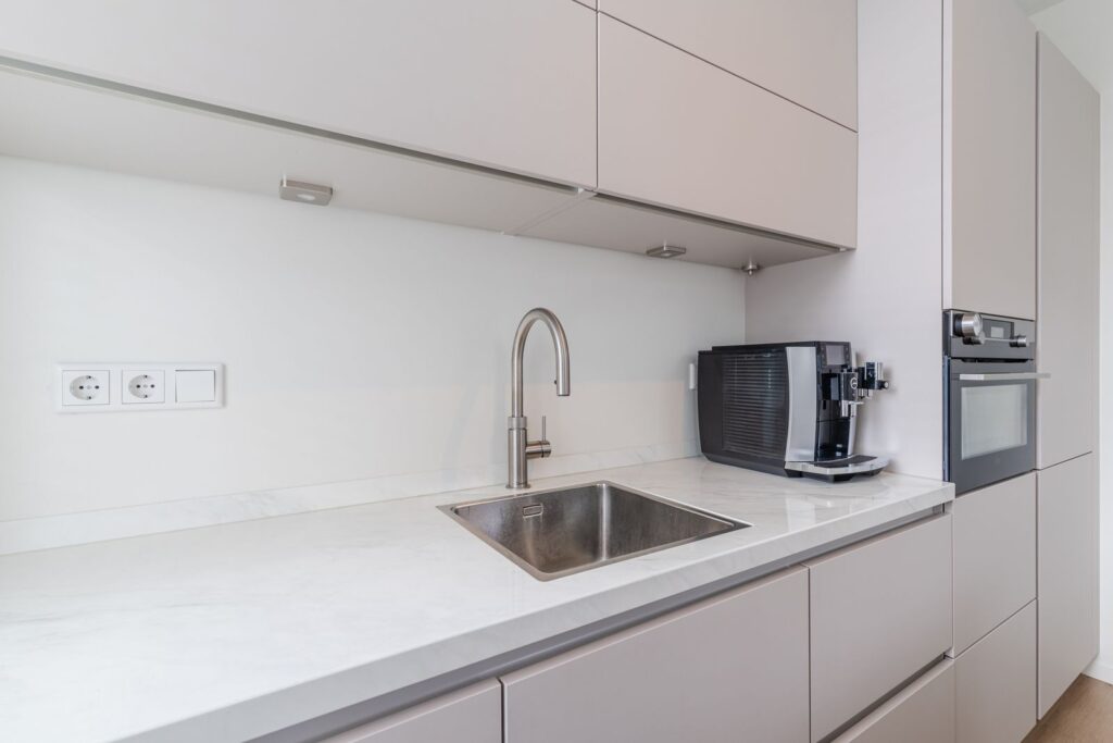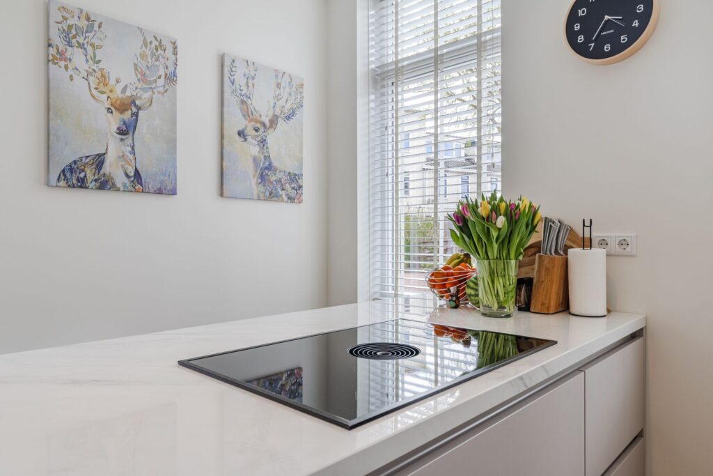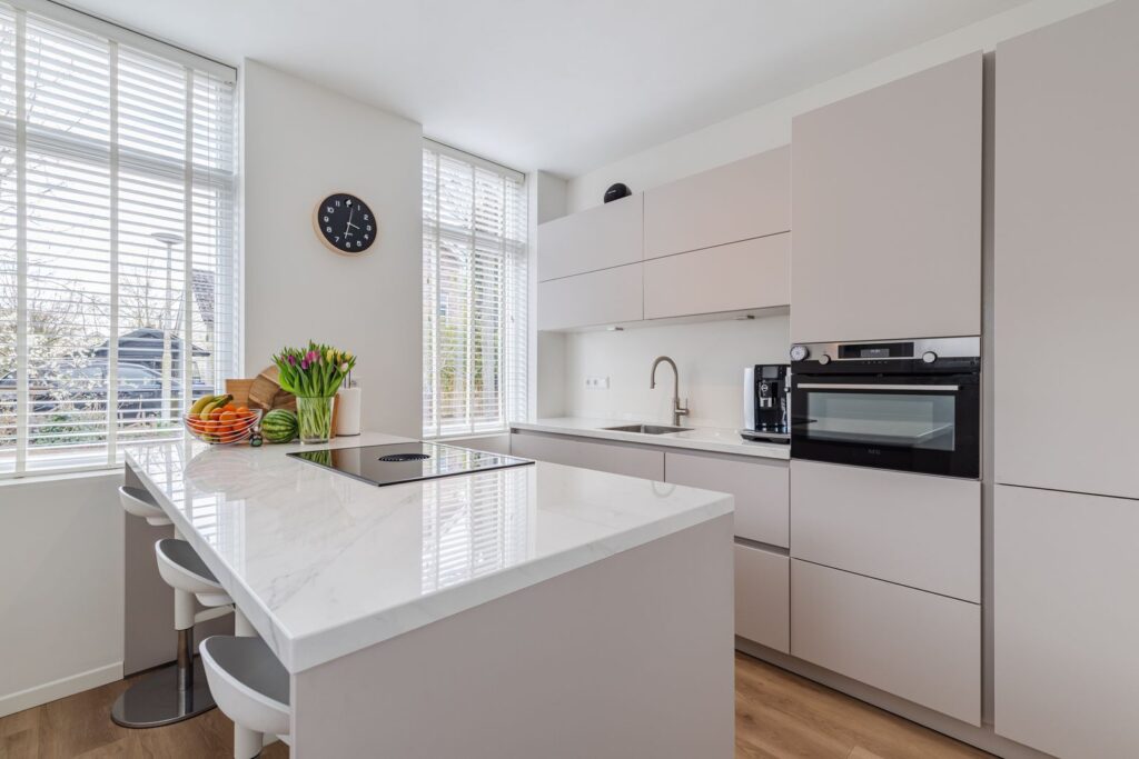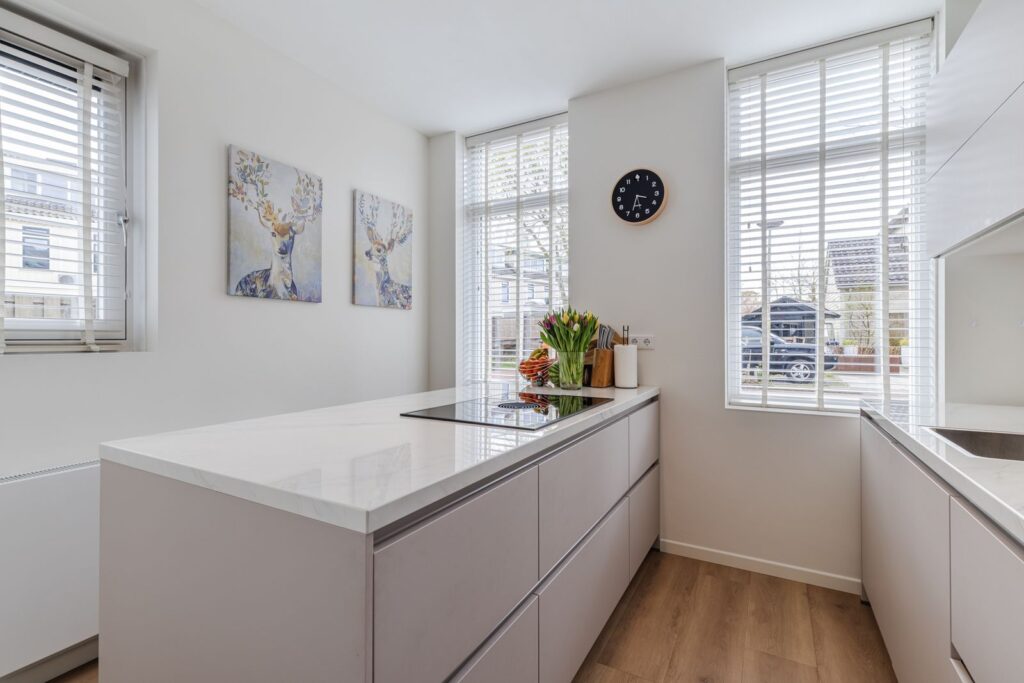 De moderne keuken aan de voorzijde is een echte eyecatcher en van alle gemakken voorzien. Het kookeiland met zitplaatsen maakt dit dé plek om te koken én samen te komen. De keuken beschikt over hoogwaardige inbouwapparatuur, waaronder een Bora inductiekookplaat met geïntegreerde afzuiging, oven-/combimagnetron, koel-vriescombinatie, vaatwasser en Quooker.