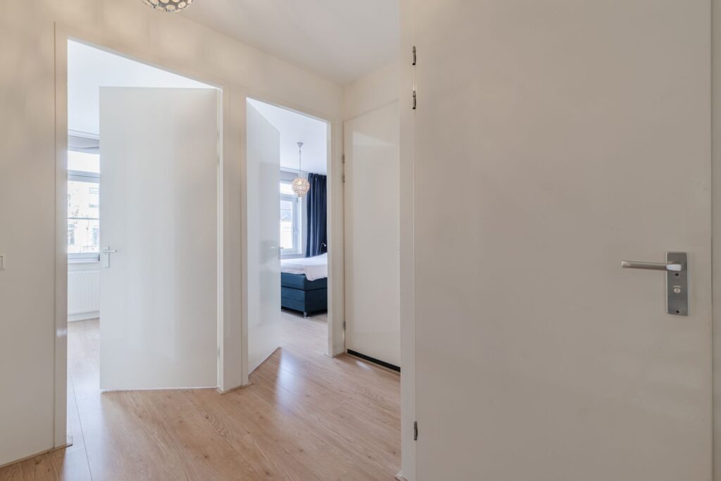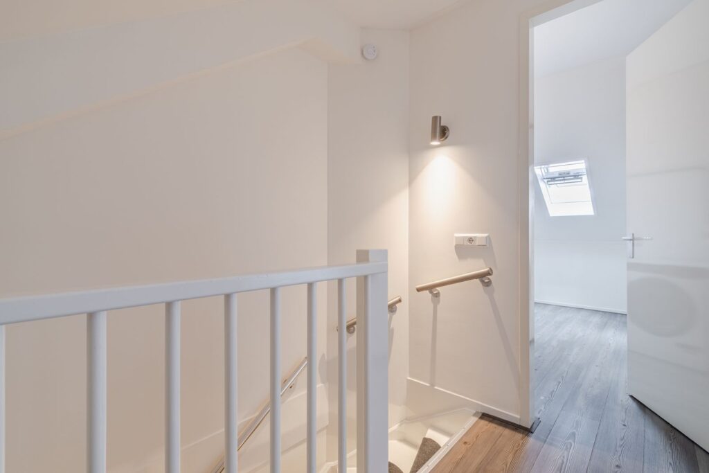 Ruime overloop met toegang tot drie slaapkamers (9, 11, 14 m²) waarvan 1 slaapkamer met balkon, de badkamer en een separate toiletruimte met zwevend toilet. De slaapkamers zijn licht, netjes afgewerkt en flexibel in te richten — ideaal voor een gezin, thuiswerkplek of hobbyruimte.