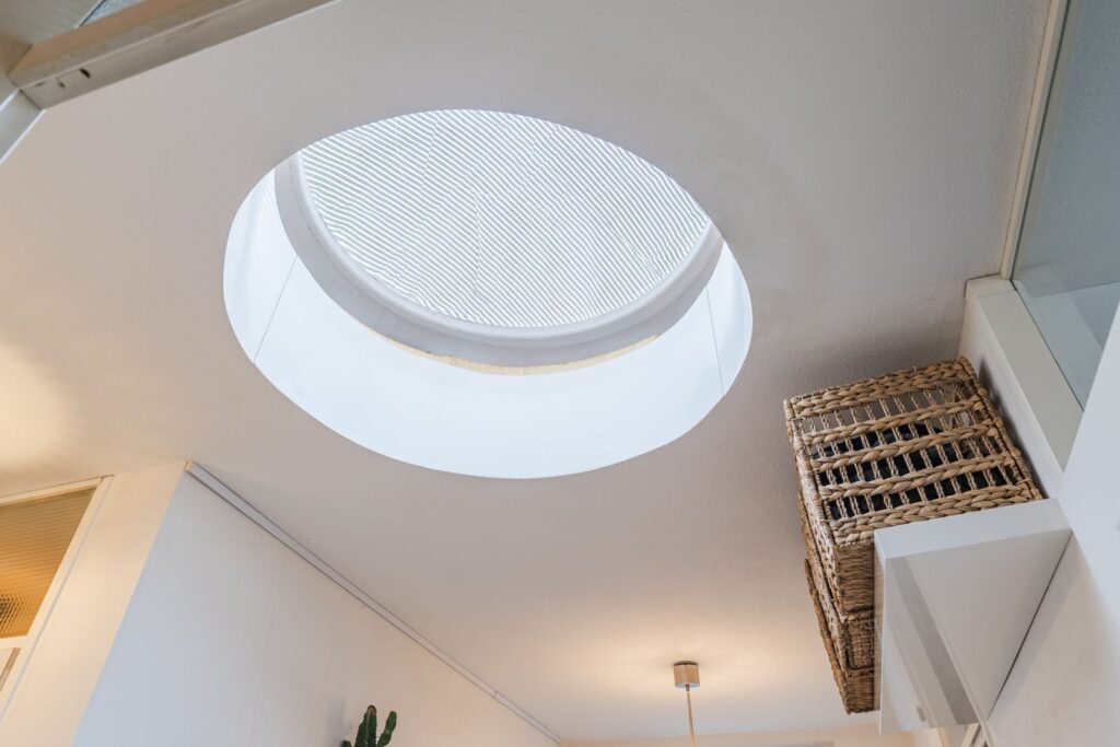 Entrance hall with skylight. Utility room with connections for a washing machine, central heating system, and a modern, virtually silent ventilation system (2024).