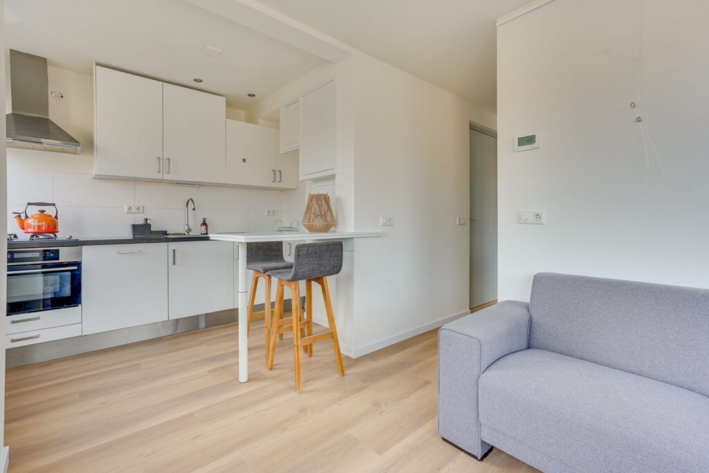 This fine apartment on the second floor is an ideal place for first-time buyers or singles looking for a place of their own in Utrecht. The home is neatly finished with light walls, continuous laminate flooring, and a modern kitchen. As the icing on the cake, there is a lovely roof terrace with an unobstructed view of the surroundings. In short, this home has it all!