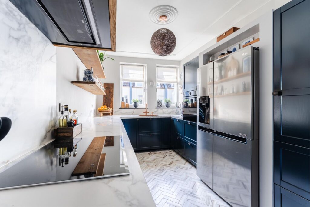 De moderne pas vernieuwde keuken aan de voorzijde is voorzien van alle benodigde inbouwapparatuur. Het grote werkblad biedt voldoende werkruimte.
