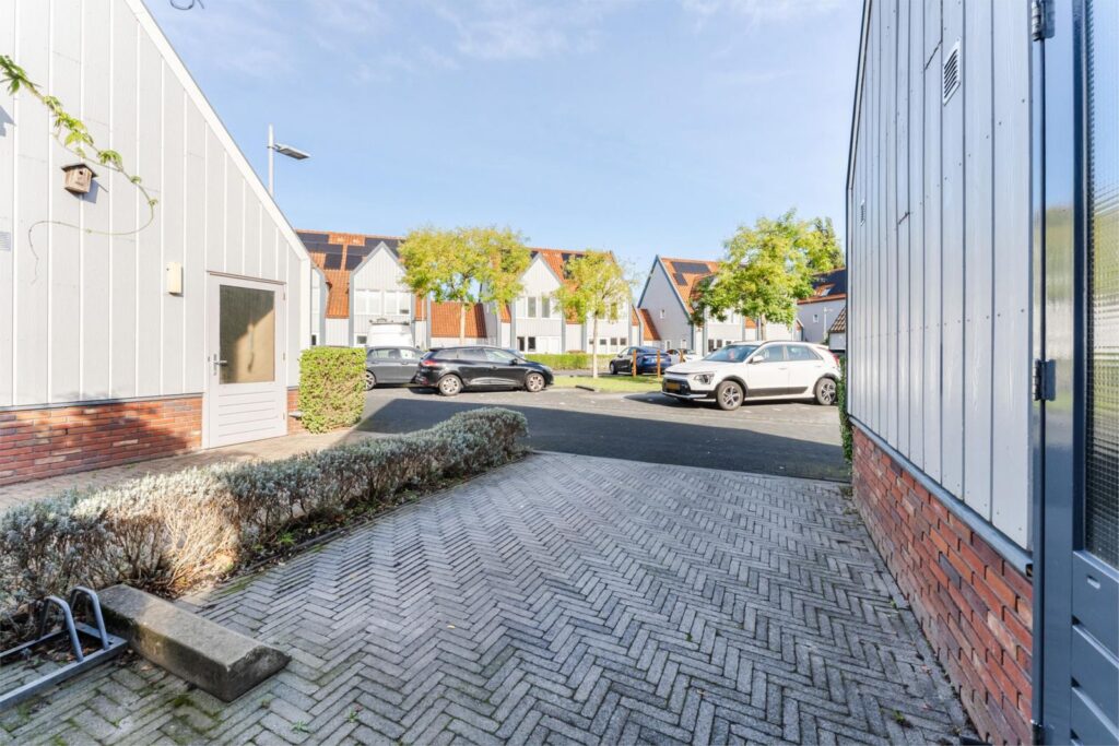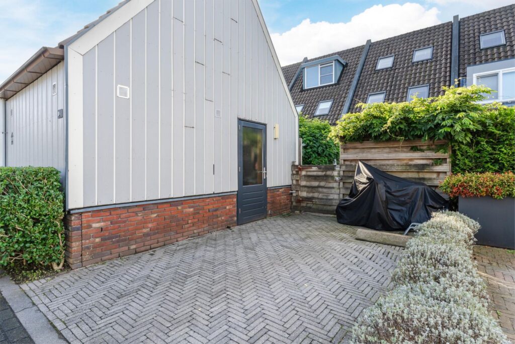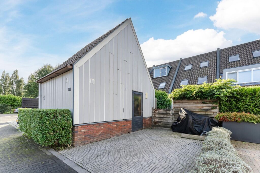 De ruime schuur biedt voldoende ruimte, mede door de bergvliering. De tuin grenst aan een rustig pleintje. Parkeren doe je eenvoudig op eigen terrein.