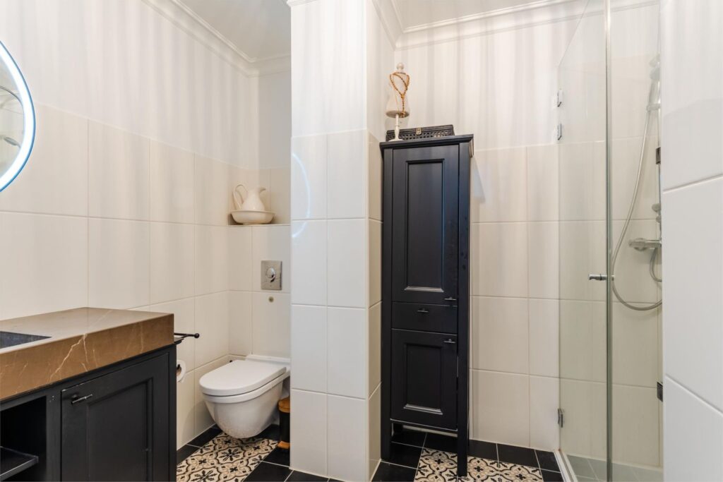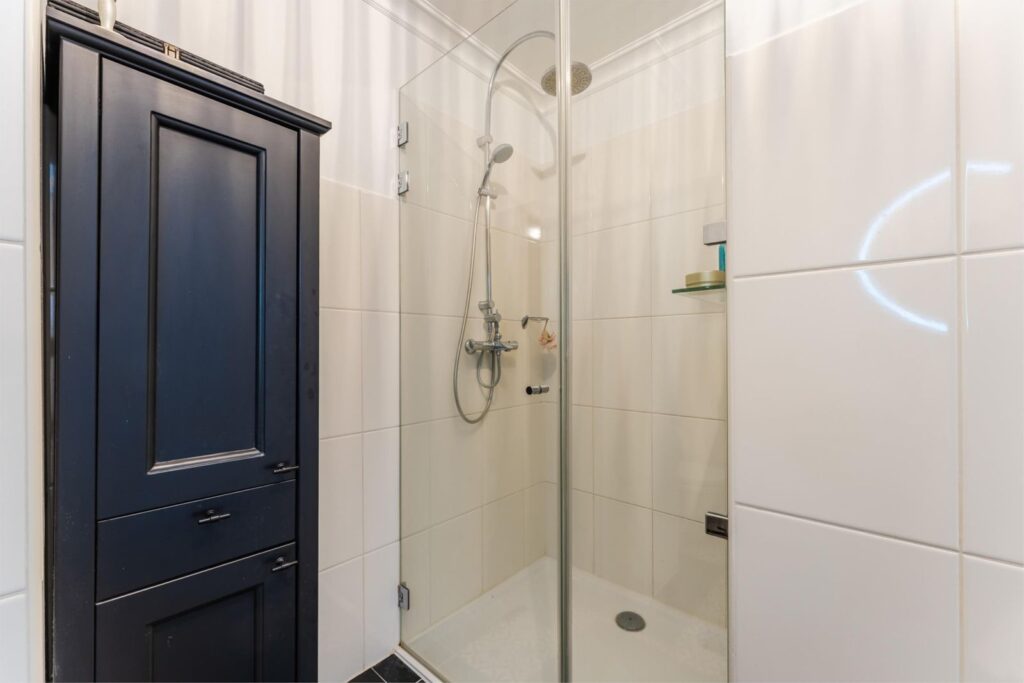 3 Slaapkamers (waarvan een met vaste kast), een ruime badkamer met douche, toilet en badmeubel. Overloop voorzien van vaste trap naar de tweede verdieping.