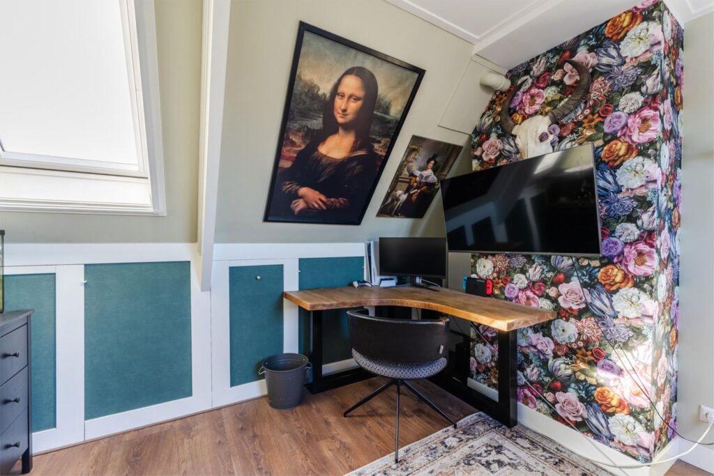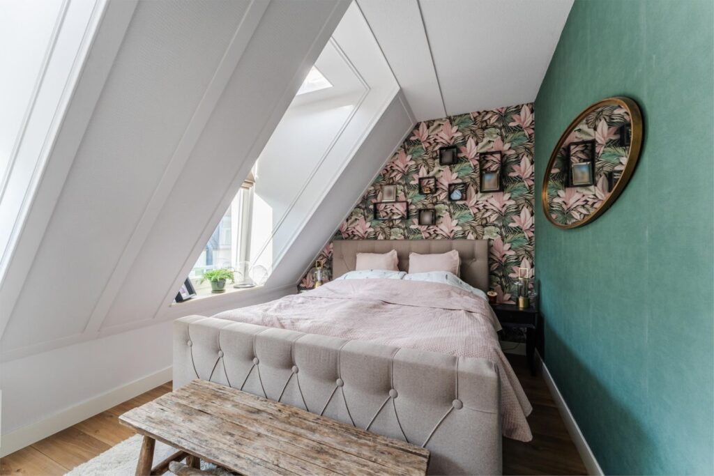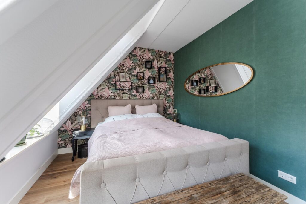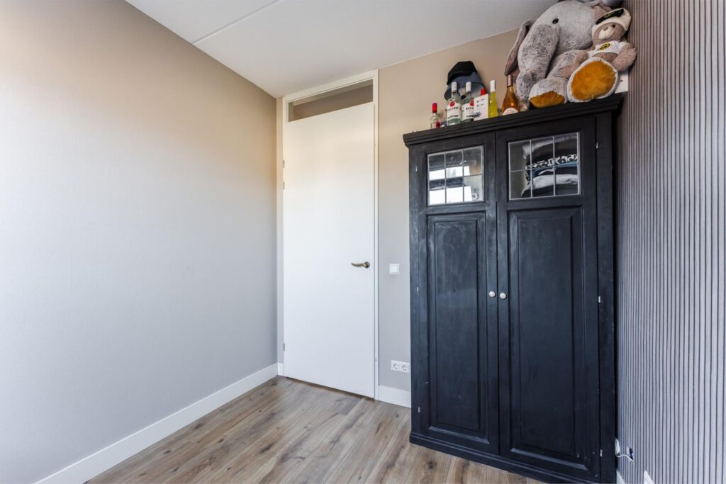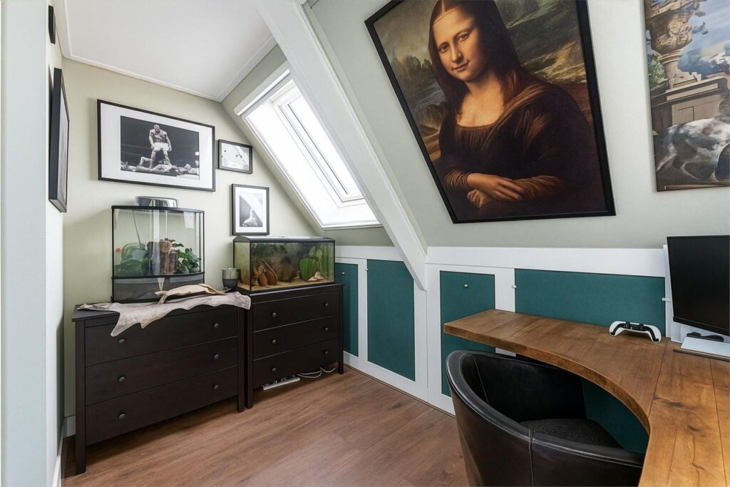 Vierde ruime slaapkamer. Ook voorzien van 2 Velux dakramen, knieschotten met bergruimte en Vlizotrap naar bergvliering. Bergvliering heeft geen stahoogte maar biedt wel voldoende opbergmogelijkheden.