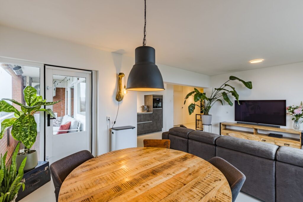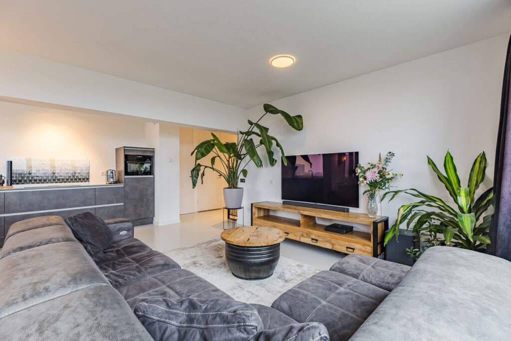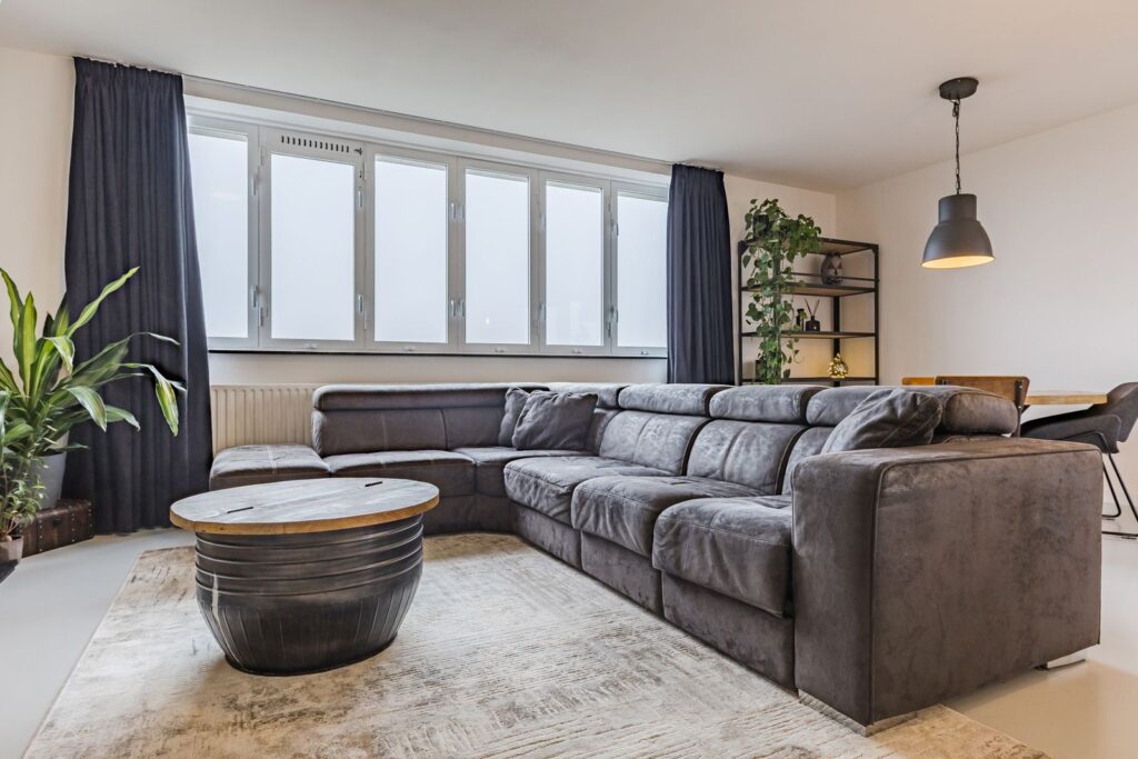 De royale woonkamer valt direct op door de enorme hoeveelheid licht en het weidse uitzicht. Dankzij de hoekligging zijn meerdere indelingen mogelijk.