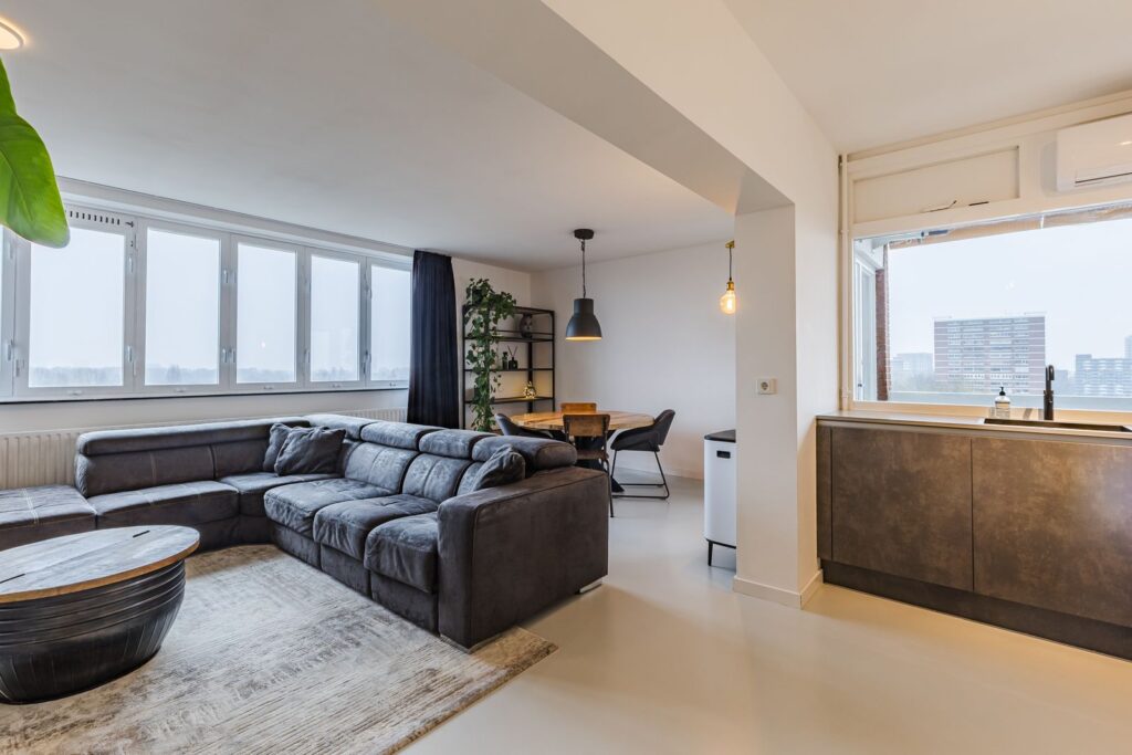 Located on the tenth floor of a well-maintained apartment building in Amsterdam-Noord, this move-in-ready, modernly renovated corner apartment features three spacious bedrooms, a bright living room and a luxurious open kitchen. Thanks to the high position and large windows, you enjoy natural daylight all day long as well as stunning panoramic views over Amsterdam. With two split air-conditioning units that also provide heating, energy costs are remarkably low. The leasehold has been fully and perpetually redeemed – worry-free living at its best.
