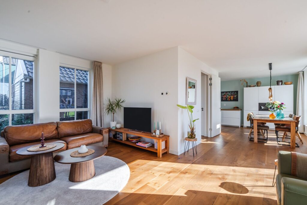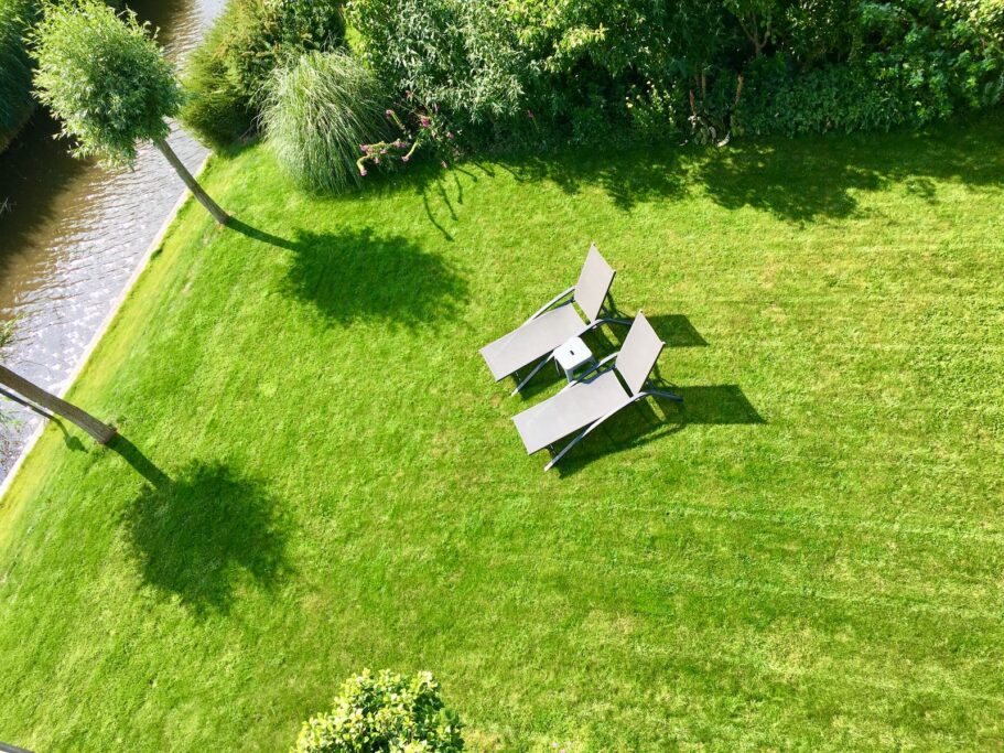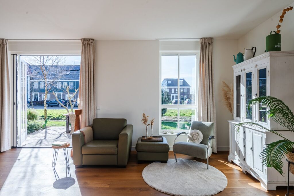 Hier kun je meteen relaxen en genieten. Van de stilte en het licht in de ruime woonkamer met hoge ramen. Van de stijlvolle badkamer (alsof je in een luxe hotel bent!). Van de mega-masterbedroom. En van de grote groene tuin op het zuidwesten vol zon- en schaduwplekjes. De tuin is trouwens onderhoudsvriendelijk, dus ga gerust loungen onder de veranda. De kids vermaken zich wel, peddelend in de sloot of spelend op straat – dat kan hier nog gewoon!