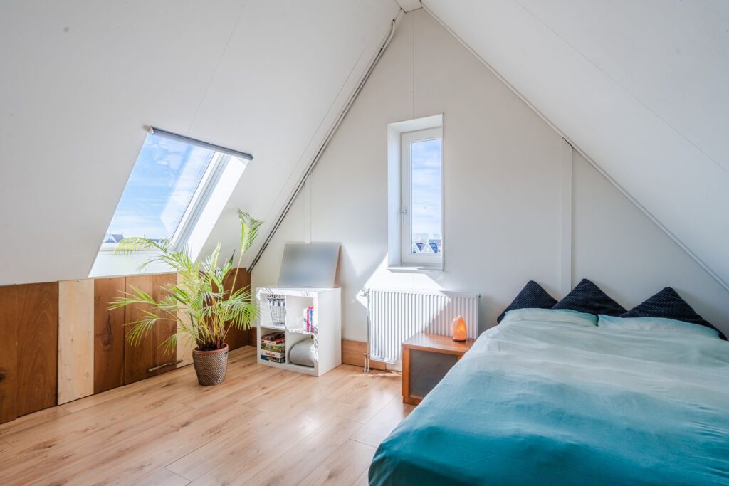* Grote 2e etage met schuin dak van bijna 3,5 meter hoog