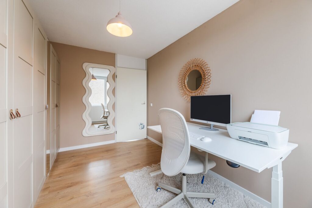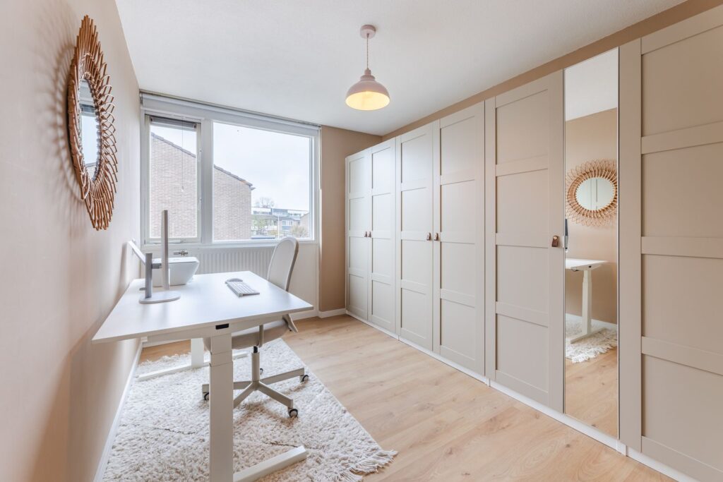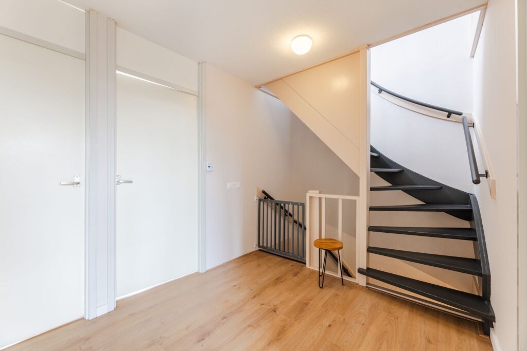 Tweede verdieping: Een echte verrassing is de tweede verdieping. Deze is in december 2023 volledig verbouwd en ingedeeld met een overloop, een vijfde (slaap-/werk)kamer en een praktische kastenwand met aansluitingen voor wasapparatuur en de opstelling van de cv-ketel.