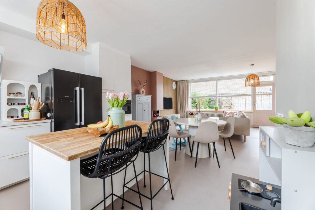 De keuken aan de voorzijde is in juli 2021 vernieuwd en voorzien van diverse inbouwapparatuur. De keuken vormt samen met de woonkamer een heerlijke leefruimte van circa 45 m2.