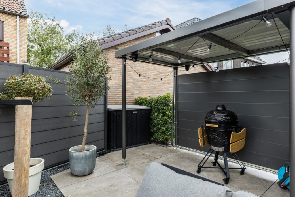 •Zonnige tuin met keramische tegels