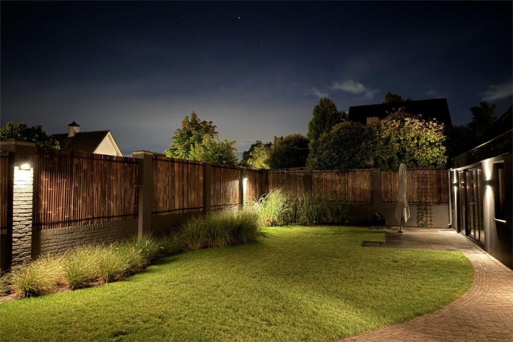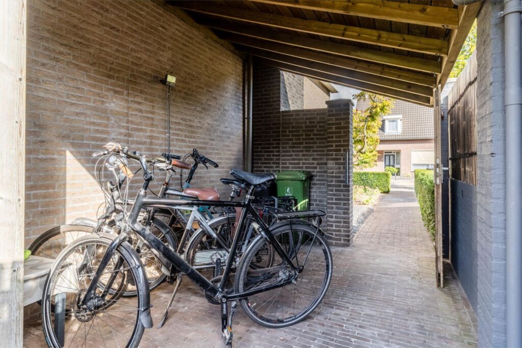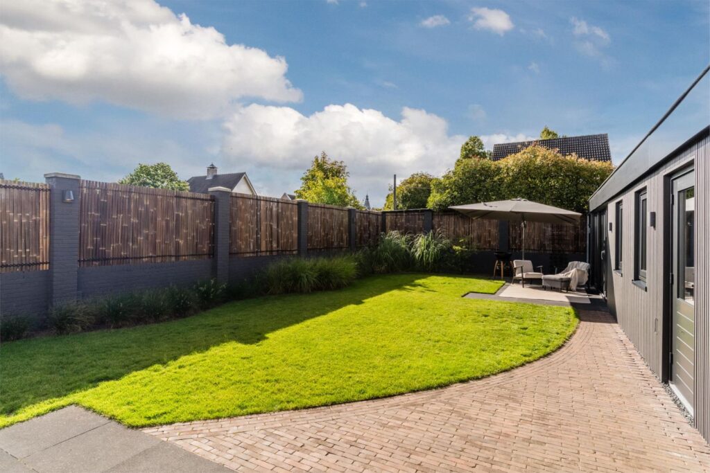 De tuin is zonnig gelegen op het westen met een achterom (waar ook de fietsenstalling is en de afvalcontainers staan) bereikbaar. Er is een overdekt terras in de tuin en er is veel privacy. Er is een speciaal betegelde ruimte voor stoelen en een ingebouwde parasolvoet aanwezig – een heerlijke BBQ-plek. De schutting is van echt bamboe gemaakt en geeft een ongelofelijk warme sfeer. Achterin de tuin is er nog een extra ruimte die kan prima dienstdoen als de houtopslag en/of als gereedschap-berging.