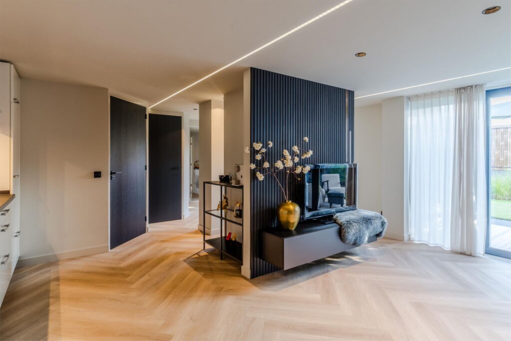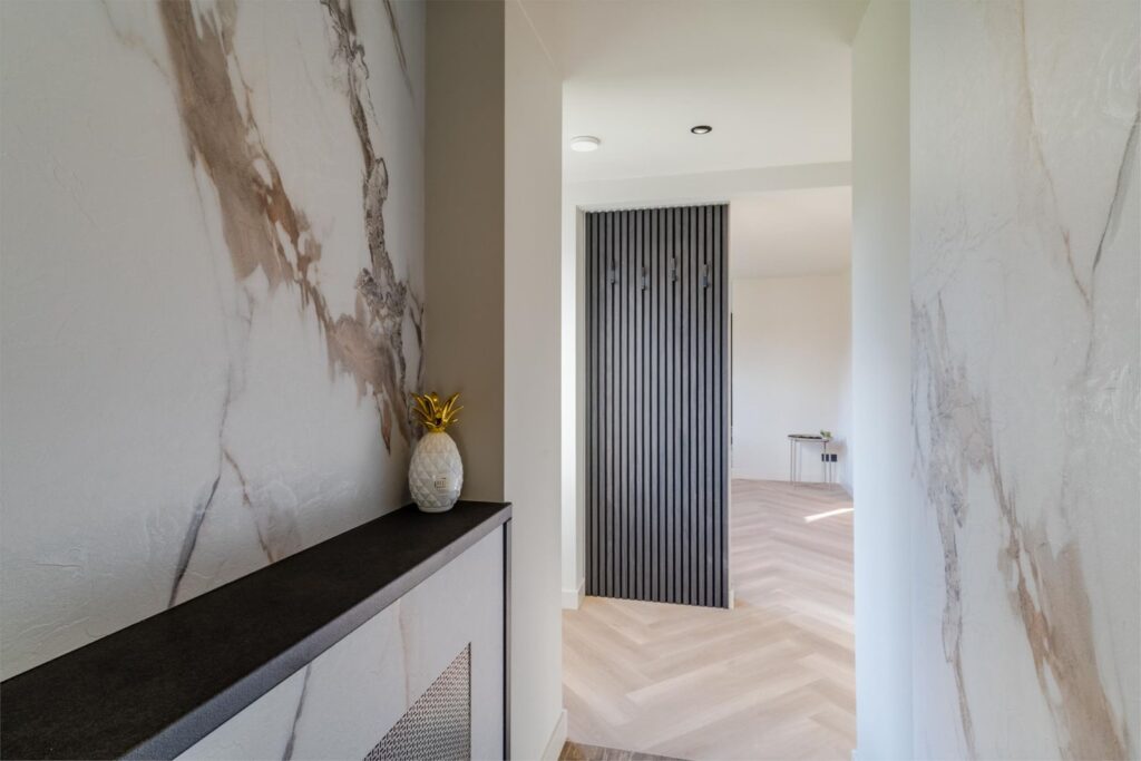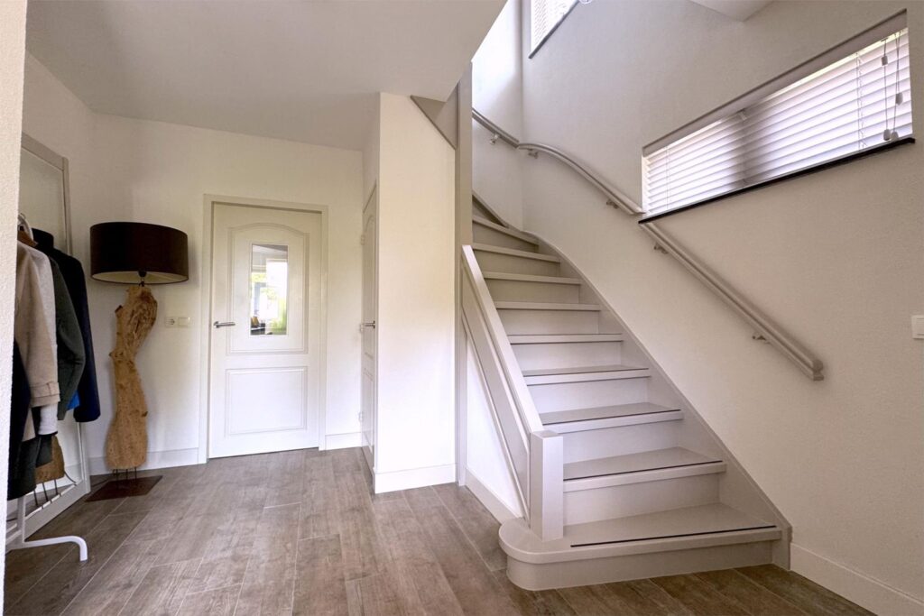 Bij binnenkomst in de hal heb je direct het gevoel dat je je begeeft in een ruimtelijke woning.