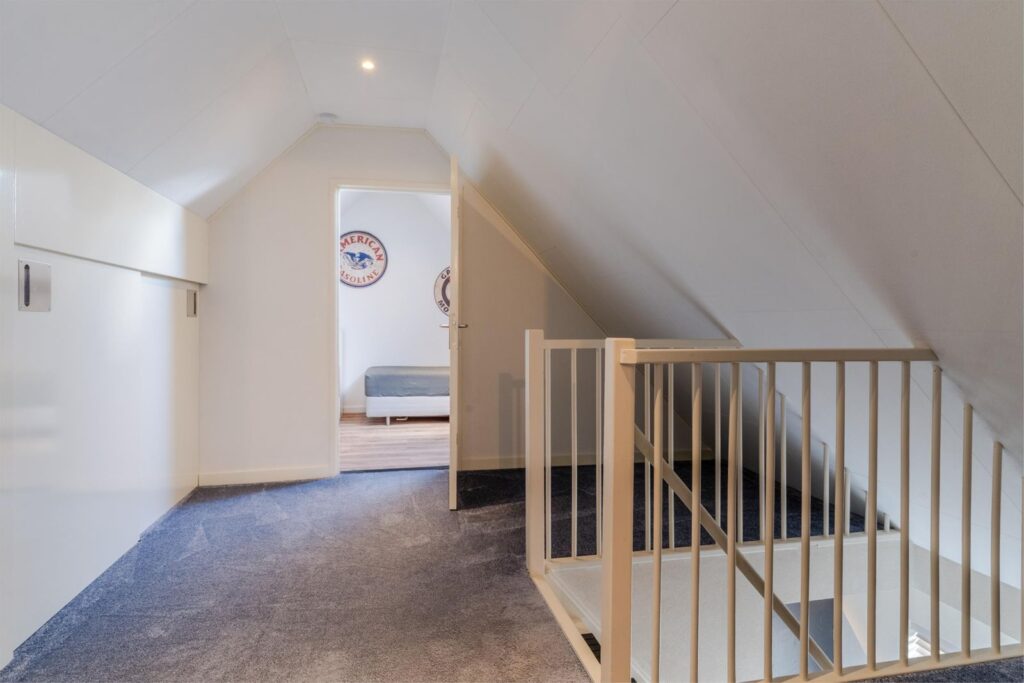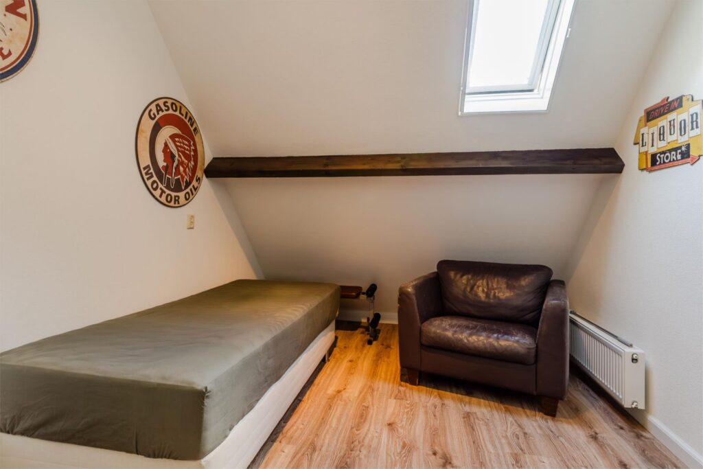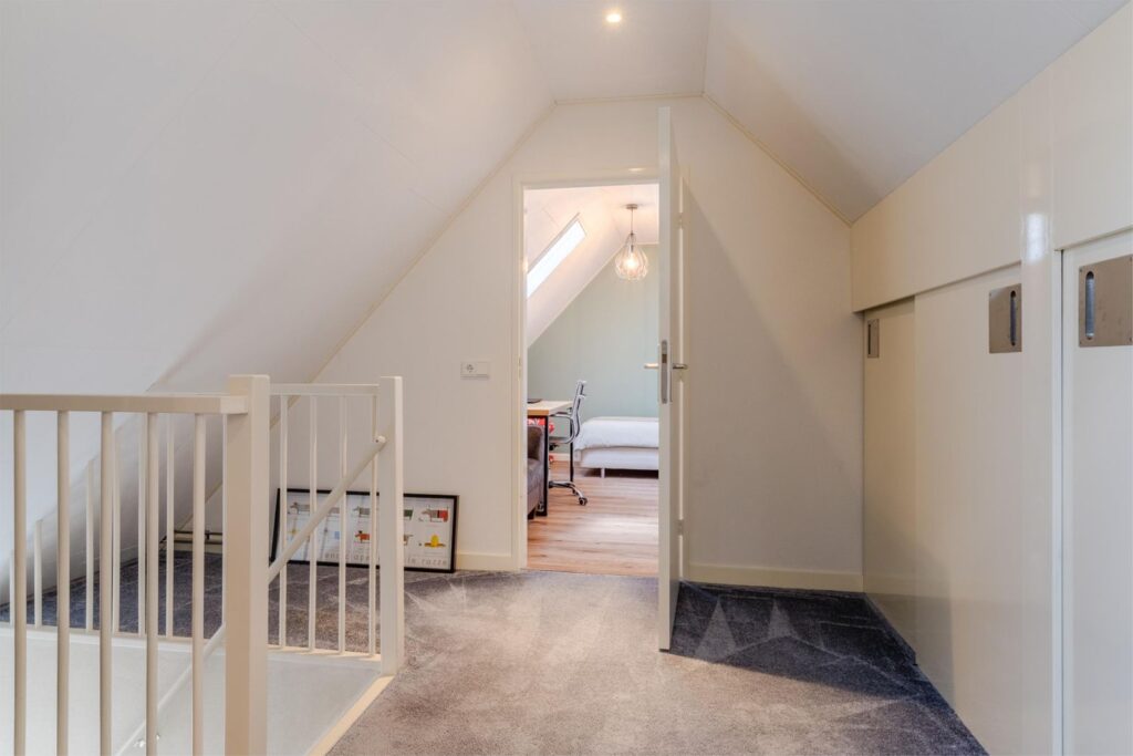 Op de eerste verdieping (zolder) is een slaapkamer die met een moderne kledingkast uitgerust is.