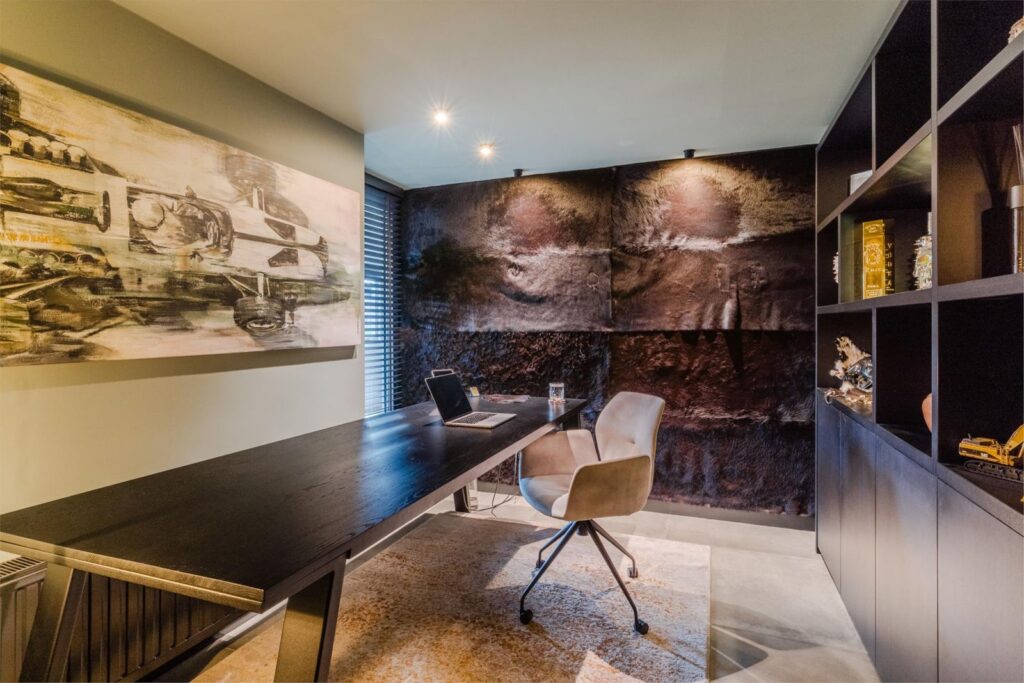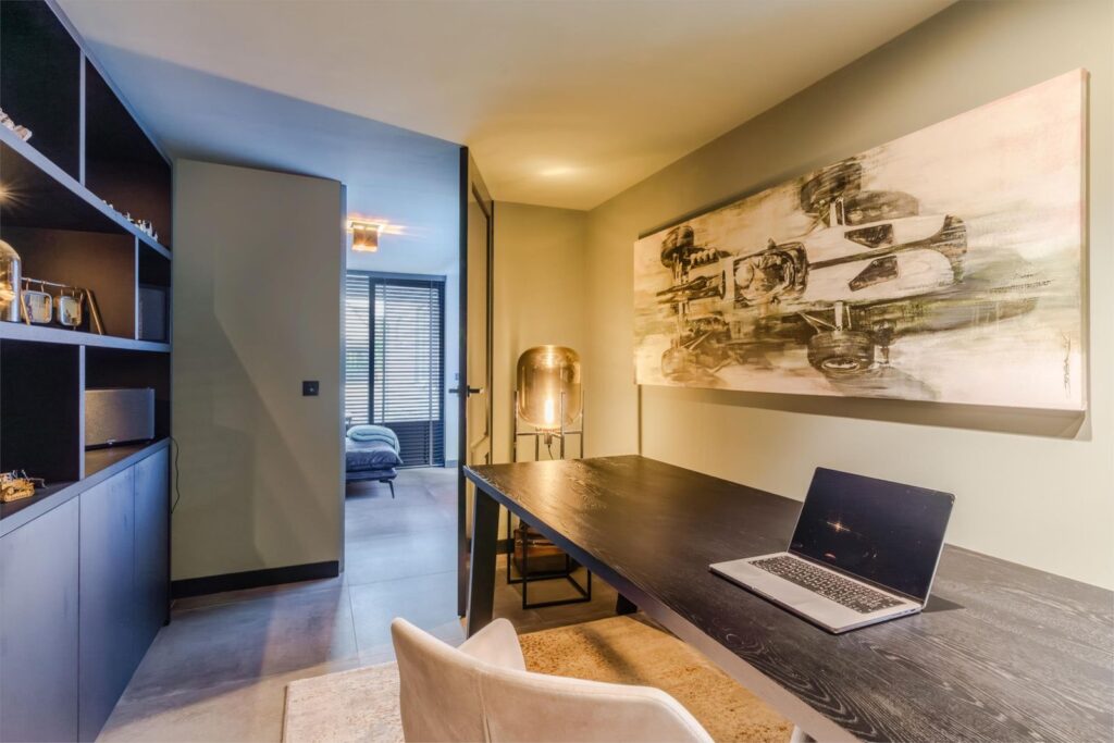 De Kantoorruimte is toegankelijk door de deur in de TV-kamer. Deze is afgewerkt met een tegelvloer, heeft een eigen raam.