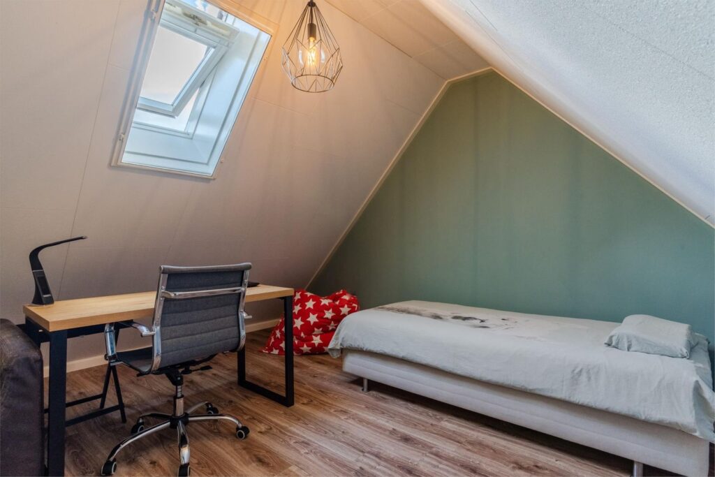 Op de tweede verdieping (zolderruimte) zijn de vierde en de vijfde slaapkamer met dakramen aanwezig. Verder is er tussen de slaapkamers een grote vaste kast ingebouwd, waar veel spullen/kleding opgeborgen kunnen worden.