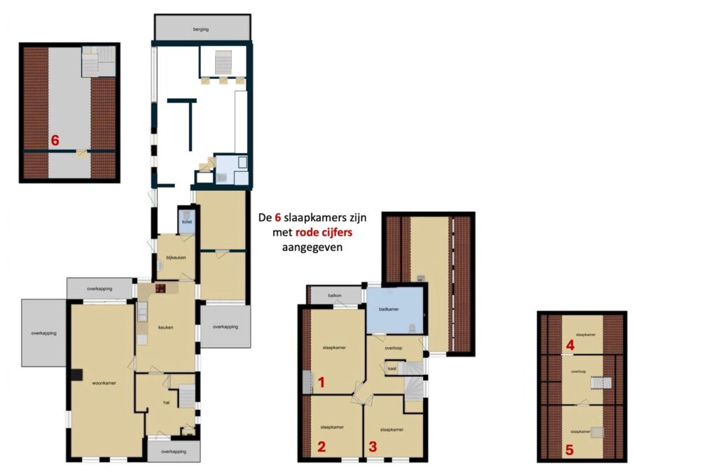 Gehele woning = 12 kamers, waarvan 6 slaapkamers
