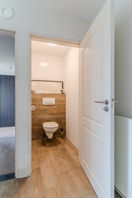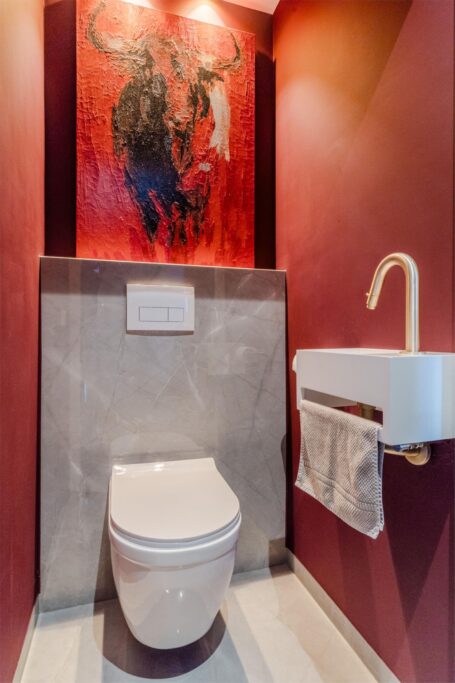 Er is vanuit de keuken toegang tot de bijkeuken waar de toiletruimte en de doorgang naar de de 2de Woonruimte zijn. De geheel betegelde toiletruimte is voorzien van een vrijhangend toilet. In de bijkeuken is vloerverwarming aanwezig.