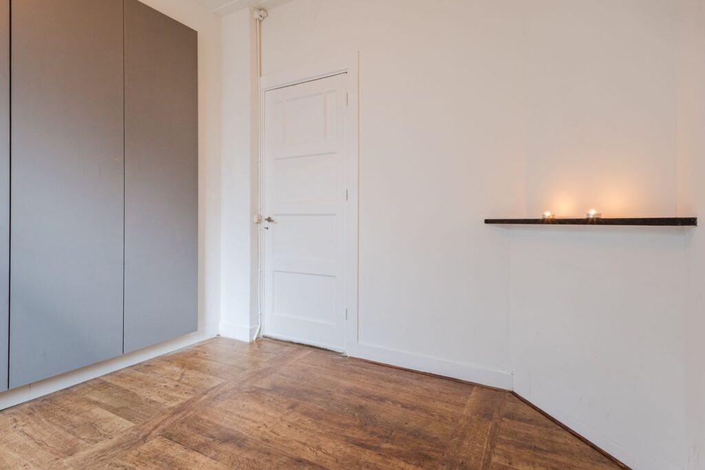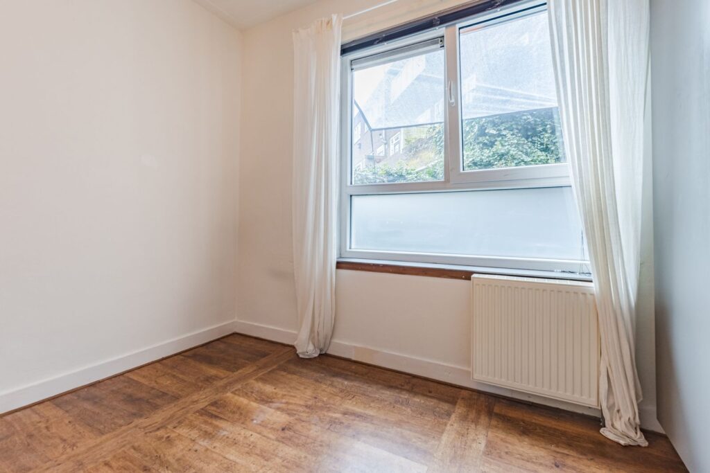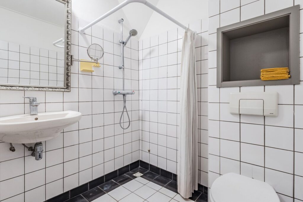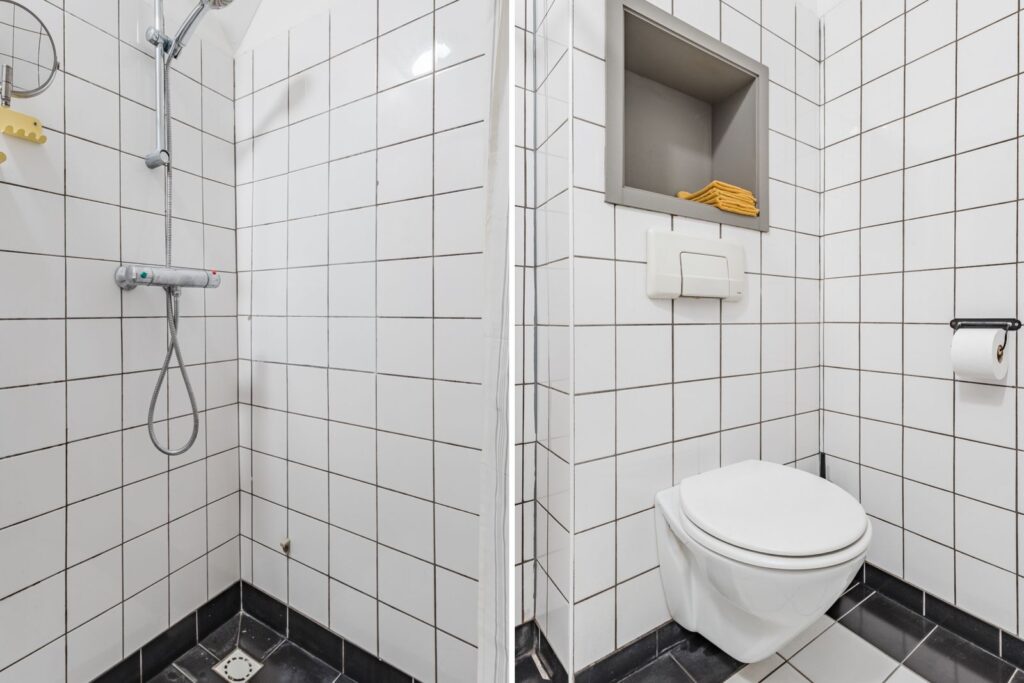 De slaapkamer heeft een prettige afmeting van circa 9 m2 en beschikt over vaste kasten en voldoende daglicht. De badkamer is volledig betegeld in een lichte kleurstelling en voorzien van een douche, wastafel en toilet.