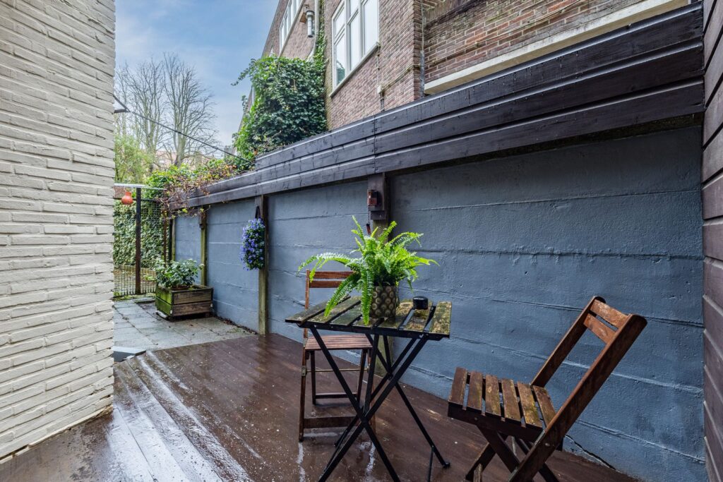 Aan de achterzijde bevindt zich het heerlijke terras op het oosten, waar je in alle rust en privacy kunt genieten van de ochtendzon en het buitenleven.