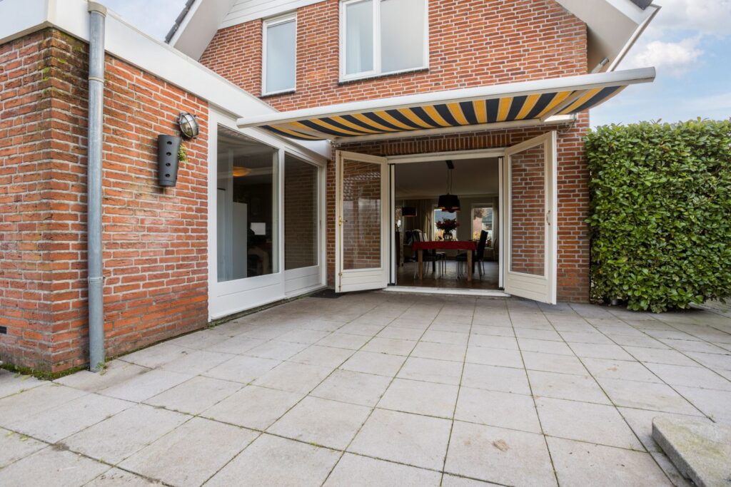 De woning beschikt over een eigen oprit met garage, geschikt voor het parkeren van meerdere auto’s en extra opslag.
