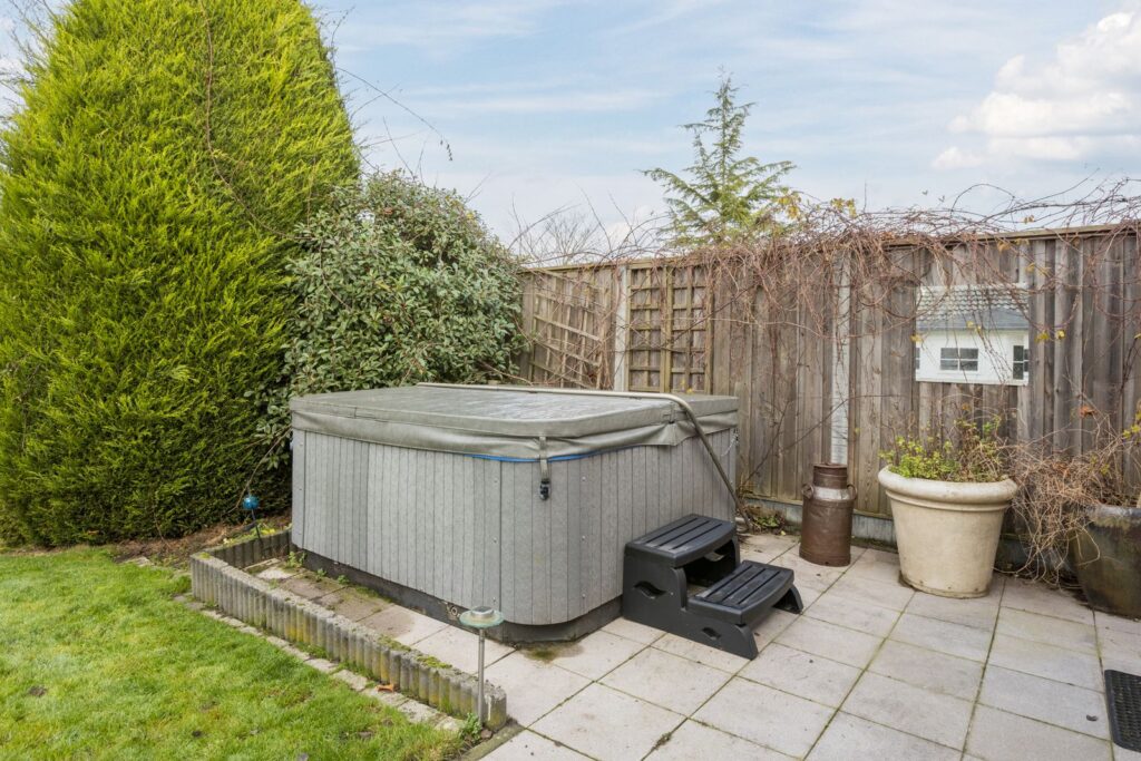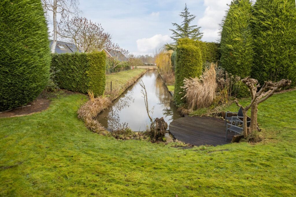De fraai aangelegde tuin biedt volop rust en privacy. Eyecatcher is de waterpartij, omgeven door een houten vlonder en groen, wat zorgt voor een ontspannen en bijna parkachtige sfeer. Op het terras met jacuzzi is het heerlijk vertoeven met uitzicht op de tuin en de omliggende natuur.