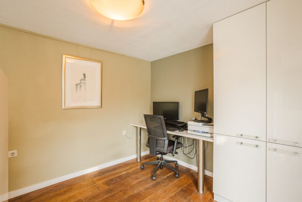 Daarnaast beschikt de begane grond over een praktische werk-/kantoorruimte, ideaal voor thuiswerken of als extra slaapkamer.