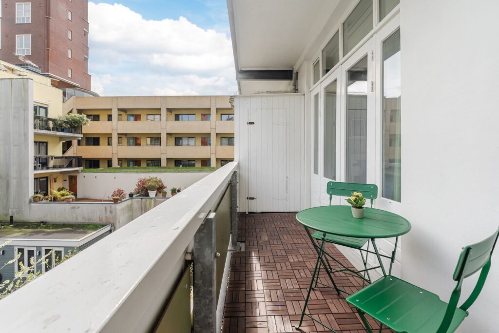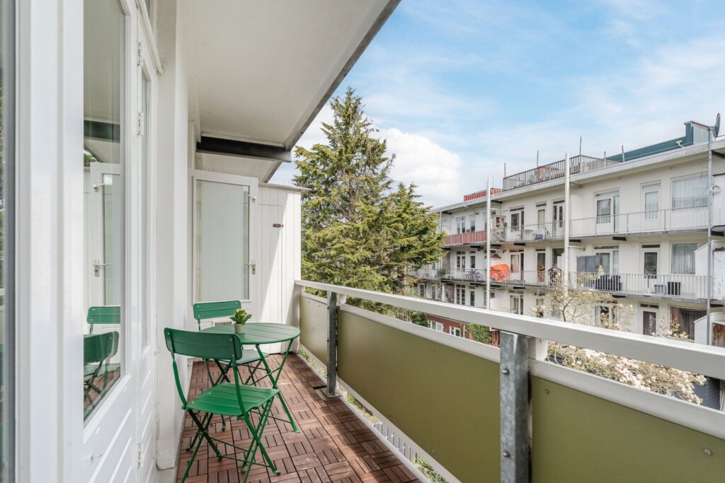 Het balkon is gelegen op het oosten en biedt een heerlijk zonnetje gedurende de hele ochtend. Dankzij de breedte van het balkon en de aanwezige bergruimte is het een fijne plek om buiten te zitten en te ontspannen.