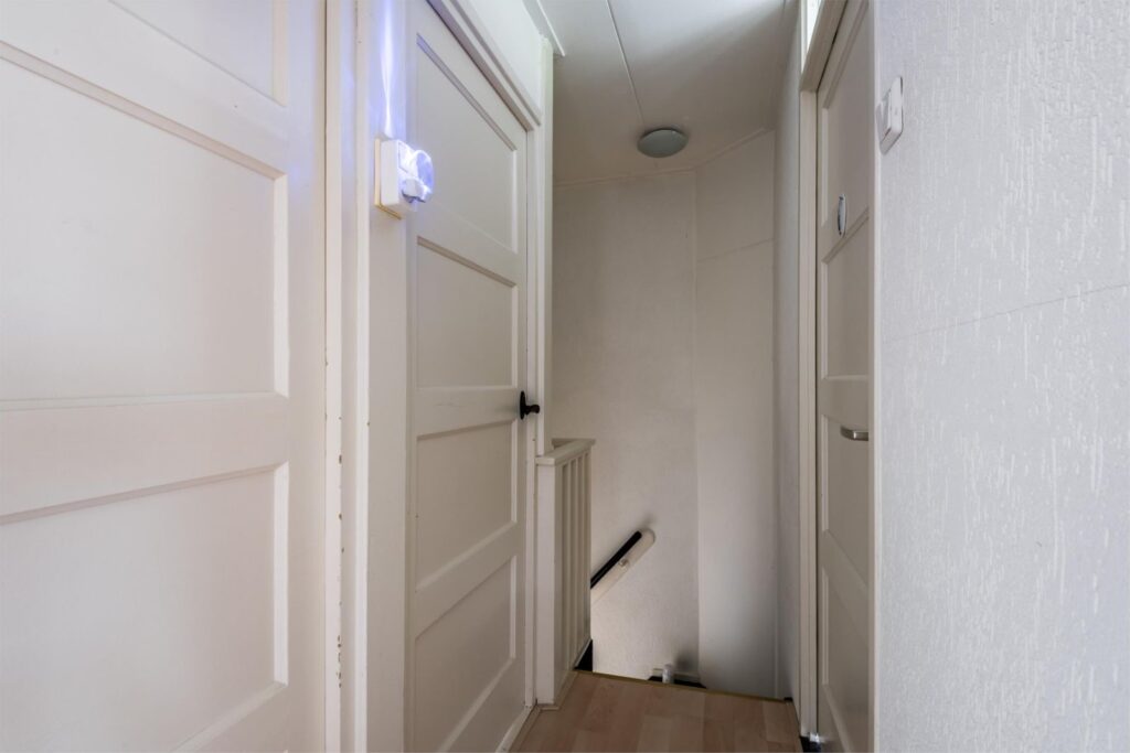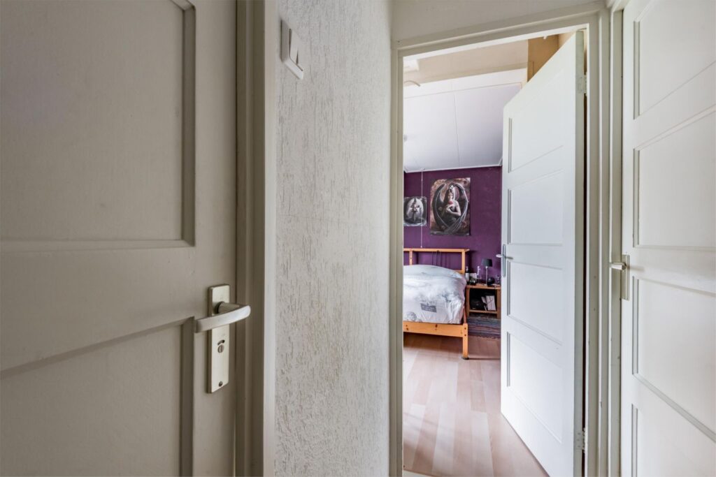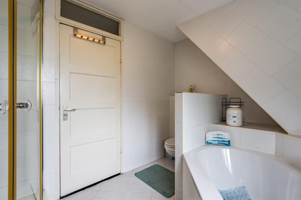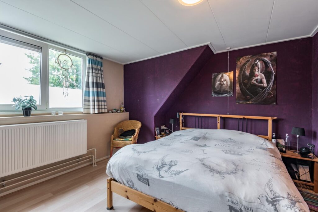 De eerste verdieping bestaat uit twee grote slaapkamers en één kleine slaapkamer welke nu in gebruik is als kleedkamer. Verder is er een ruime badkamer met een douchecabine, een bad en het tweede toilet. Vanuit de slaapkamer kom je met een losse trap op de zolderverdieping.