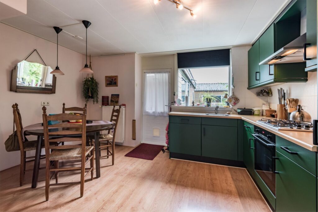 Een ruime woonkeuken. De keuken in zeer goede staat en is in 2023 opnieuw gewrapped, eind 2023 is er een nieuwe oven geplaatst en de vaatwasser is in 2022 vervangen.