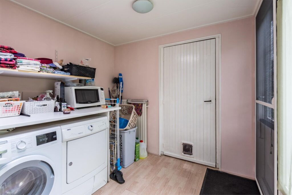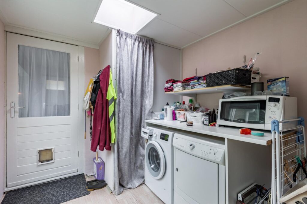 Achter de keuken bevindt zich de bijkeuken, die in gebruik is als wasruimte met alle bijbehorende aansluitingen, hier bevindt zich ook de cv/ warmwaterketel met bouwjaar 2023. Ook is hier nog een extra waterkraan gerealiseerd.