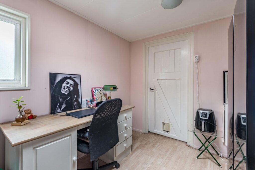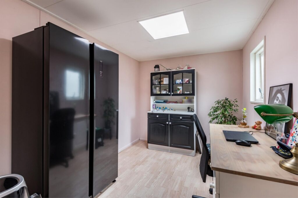 Door de bijkeuken kom je in een extra kamer die is ingericht als thuiswerkkantoor, waardoor werk en privé goed gescheiden kan blijven. Eventueel is de kamer ook in te richten als extra slaapkamer.