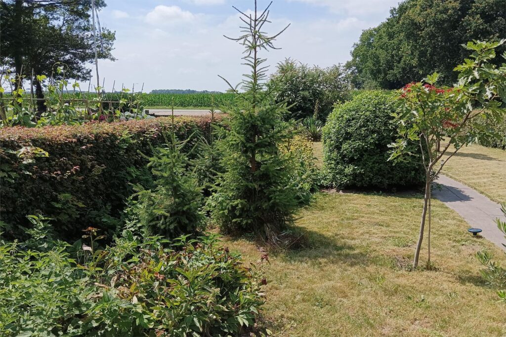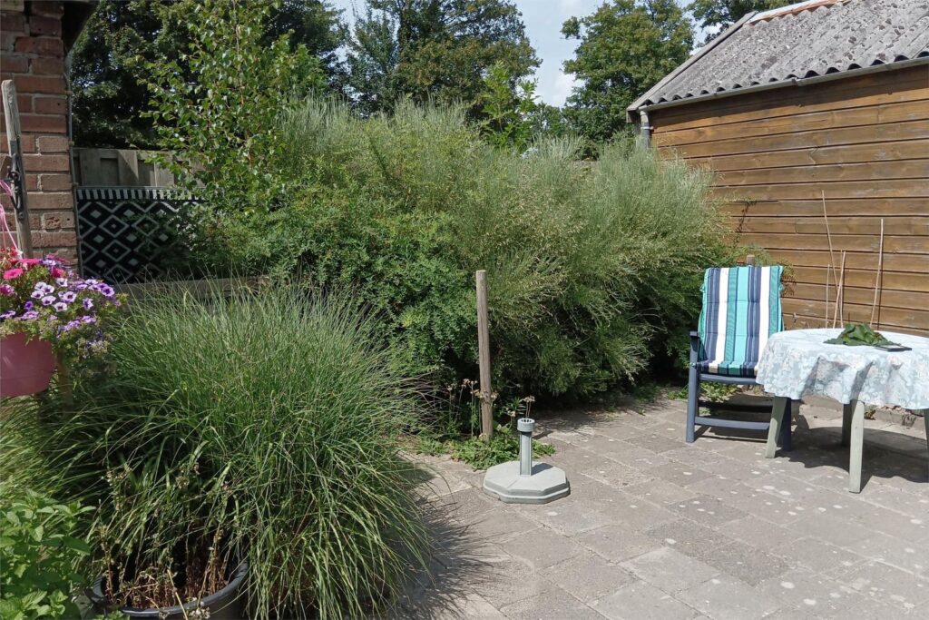 Vanuit de bijkeuken kom je in een ruime achtertuin met verschillende zitjes om te genieten van een heerlijk etentje in de zwoele zomerdagen of lekker vrij te kunnen zonnen. In de achtertuin staan verschillende bessenstruiken, frambozen en een kruidentuin met verschillende kruiden. Voor de aankleding is veel groen gebruikt waardoor het geheel een gezellige uitstraling heeft.