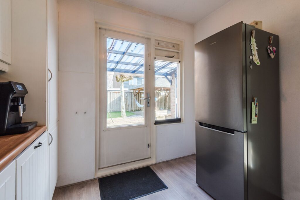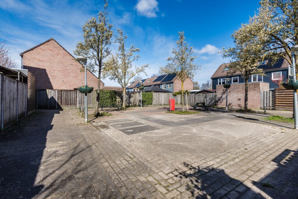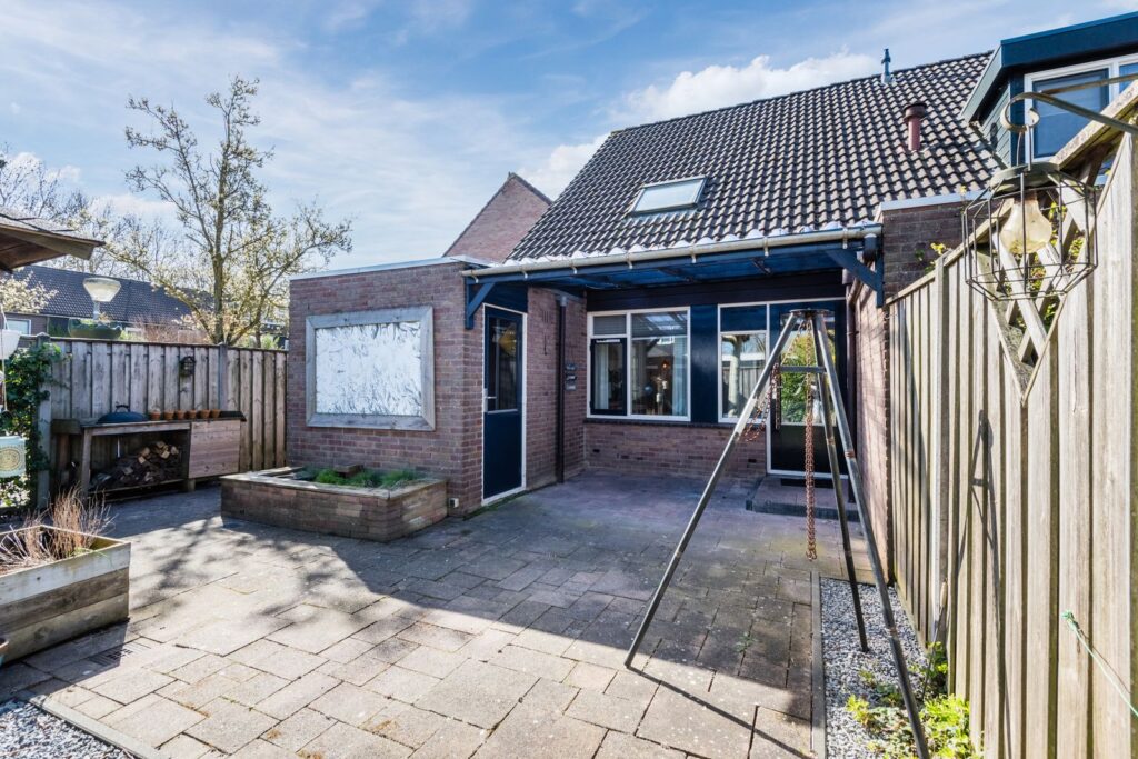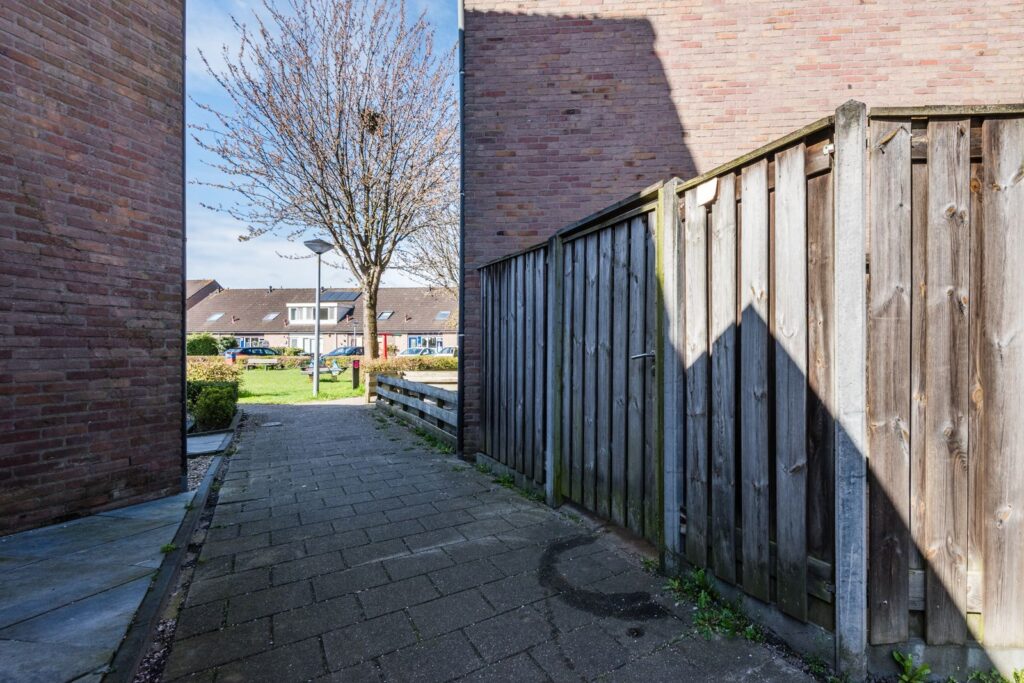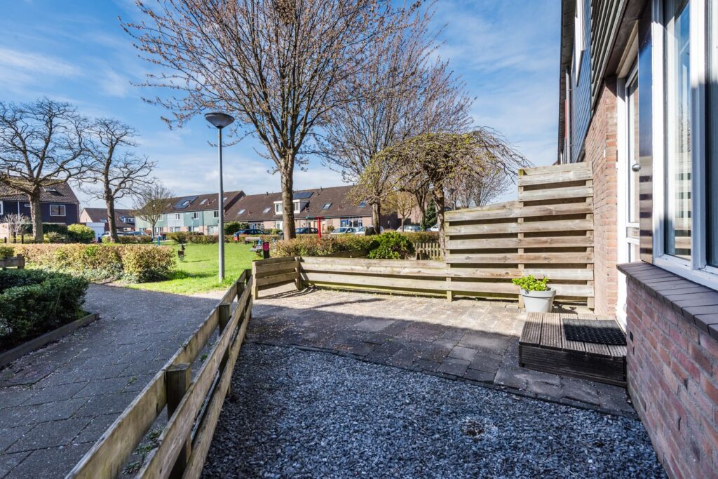 De achtertuin ligt op het noordoosten, en er staat een ruim prieel (3,5*3,5 m) waardoor je hier vaak buiten kunt genieten. De tuin is ingericht met een gazon (kunstgras), een stenen schuur (nieuw dak in 2020), een houten schutting met betonnen palen en een ingang naast het huis. De inrichting van de tuin zorgt voor een degelijke en onderhoudsvriendelijke afwerking.
