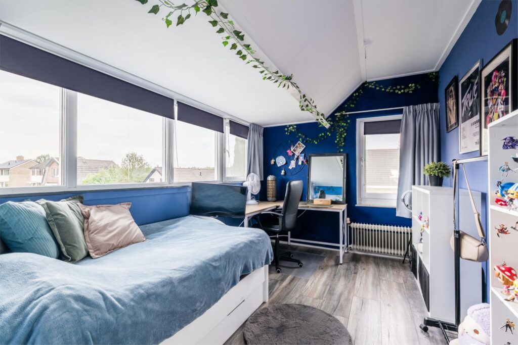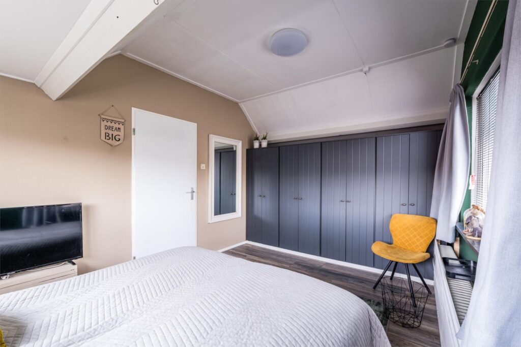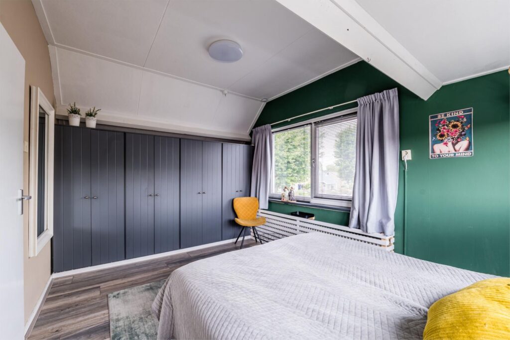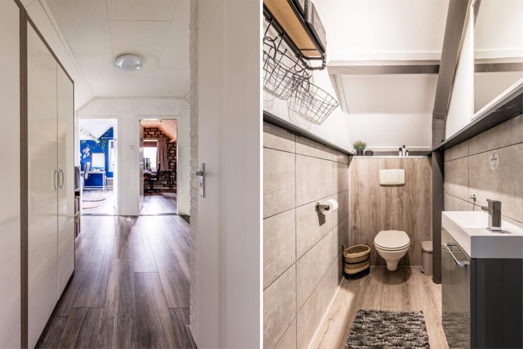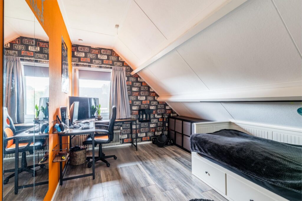 Op de eerste verdieping vindt u een ruime overloop, een tweede toilet met fontein en drie ruime slaapkamers. De slaapkamers en de overloop zijn recentelijk voorzien van een nieuwe laminaatvloer. Twee slaapkamers zijn voorzien van een dakkapel en extra bergruimte onder het schuine dak, wat zorgt voor zowel lichtinval als praktische opbergmogelijkheden. De andere slaapkamer is royaal en heeft ook extra opbergmogelijkheden. Tevens is er een zolder voor extra opbergruimte.